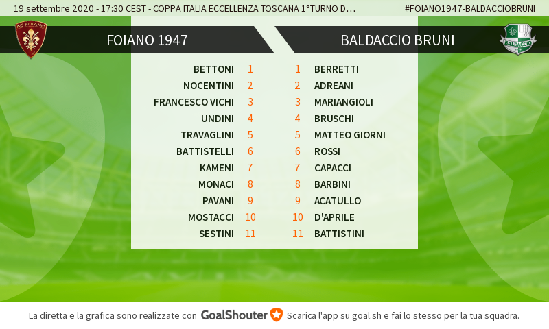 Queste le formazioni iniziali dal profilo facebook del Foiano: