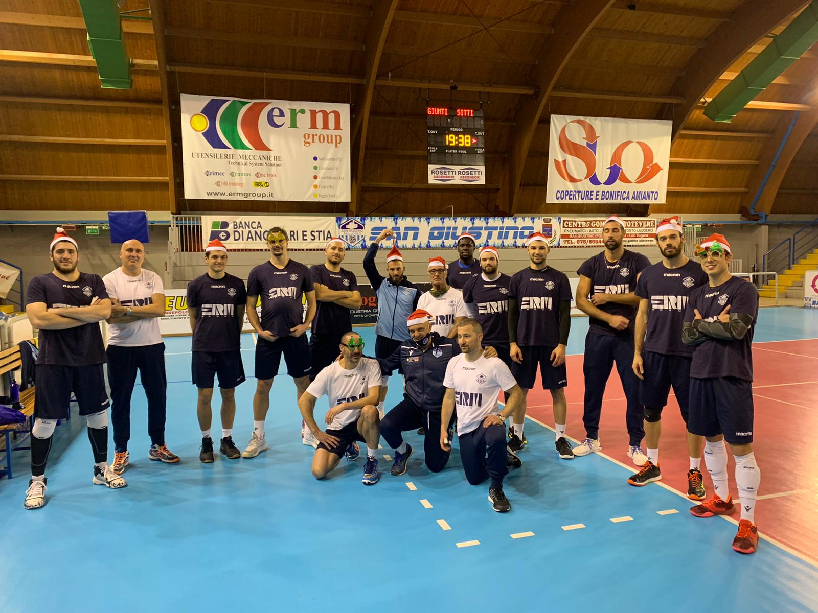 Durante queste festività natalizie la Ermgroup San Giustino di B maschile di pallavolo ha trascorso alcuni momenti di convivialità tra le mura del Palazzetto dello sport. Sono intervenuti il Sindaco Paolo Fratini, l’Assessore allo sport Andrea Guerrieri e Don Filippo, grande tifoso della squadra. Il Presidente Claudio Bigi ha ringraziato tutti coloro che fanno parte di questa realtà. A nome della società Tiziana Consoli e il Capitano Rinaldo Conti hanno omaggiato il Presidente, che giorno dopo giorno rende possibile il sogno chiamato Ermgroup San Giustino. Dopo la consegna dei regali agli atleti e allo Staff, l’augurio di buone feste è stato coronato da un brindisi con tanta voglia, al tempo stesso, di tornare alla normalità riprendendo finalmente a giocare.