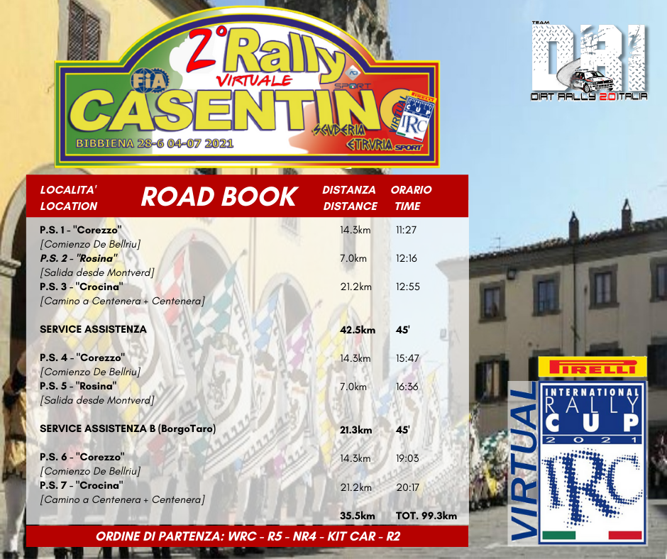 Poco meno di cento, esattamente 99.3, i chilometri a fare da cornice ad un confronto che darà la possibilità agli iscritti di cimentarsi sulle prove speciali “casentinesi”, in un arco temporale che va da lunedì 28 giugno a domenica 4 luglio. “Corezzo”, “Rosina” e “Crocina”, non potevano essere che le prove reali a confermarsi teatro della versione e-sport, parte integrante del Virtual International Rally Cup 2021.