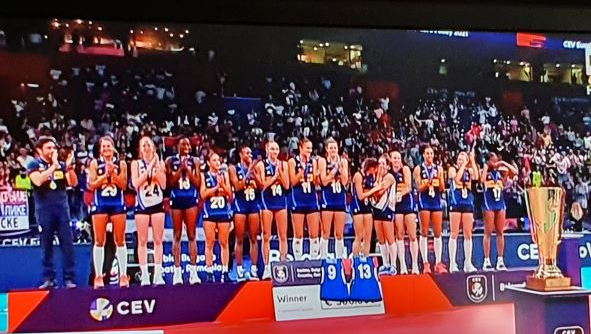 4 settembre 2021 by Patti Fabio Italia Campione d’Europa di pallavolo femminile Pallavolo Lascia un commento Incredibile impresa delle ragazze della pallavolo italiana che vanno a vincere la finale europea, nell’arena di Belgrado, 3-1 contro la squadra di casa, la Serbia. Condividi: Fai clic per condividere su X (Si apre in una nuova finestra) X Fai clic per condividere su Facebook (Si apre in una nuova finestra) Facebook Mi piace Caricamento... Correlati