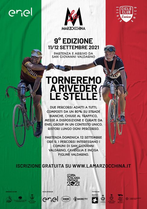 Quest’anno oltre all’attesa gara ciclistica dal consueto fascino vintage della scampagnata tra amici con vecchie bici d’epoca, sono state previste una serie di iniziative per coinvolgere l’intera comunità e attrarre curiosi e appassionati. La partenza de La Marzocchina, domenica 12 settembre alle 9 da Corso Italia a San Giovanni Valdarno. In questa edizione saranno due i tracciati: il “corto” da 21 chilometri e il “classico” da 55 chilometri. Tra i punti di forza della Marzocchina, i 38 chilometri di strade bianche chiuse al traffico all’interno dell’area mineraria di Santa Barbara, nei comuni di Cavriglia e Figline Incisa Valdarno, recuperata grazie all’importante lavoro svolto da Enel, che ha permesso di realizzare un percorso sicuro immerso nel verde di un angolo inedito di Toscana, nell’ambito del più ampio progetto di riqualificazione che prevede la valorizzazione dell’area dal punto di vista turistico, sportivo e naturalistico.