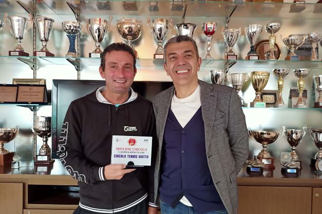 Il Tennis Giotto ha ospitato le premiazioni del Circuito delle Vallate Aretine del 2020 e del 2021. La manifestazione si è sviluppata nell’ultimo biennio attraverso un ricco calendario di tornei dall’Under10 agli adulti che si sono svolti sui campi della provincia di Arezzo e delle provincie limitrofe, con la definizione delle classifiche nelle diverse categorie che hanno visto confrontarsi migliaia di atleti under e over. Un particolare riconoscimento è spettato proprio al Tennis Giotto che è stato premiato come il miglior circolo del Circuito delle Vallate Aretine del 2020. Nella foto: Benci e Benvenuti