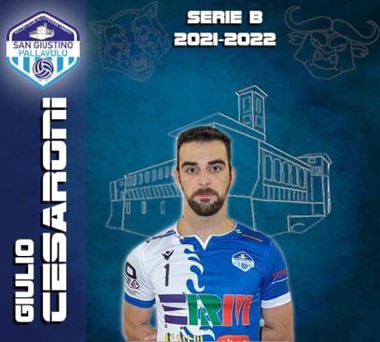 Giulio Cesaroni, 27enne centrale della ErmGroup San Giustino capolista del girone F della Serie B maschile. Il giocatore narnese è alla terza stagione in biancazzurro.