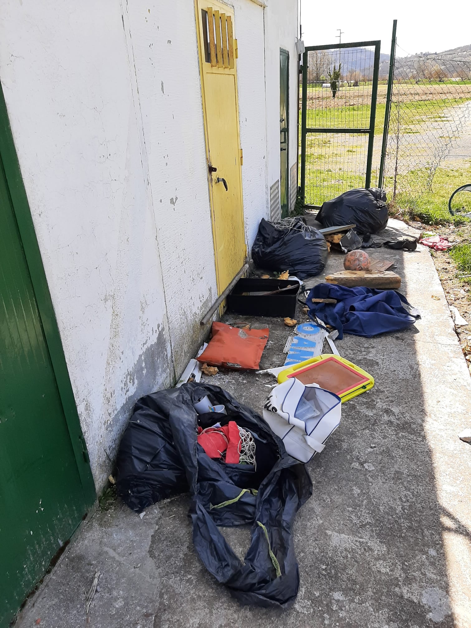La situazione attuale è quella che vedete dalle immagini. Una situazione di totale degrado. Per non parlare di una mancanza di rispetto gravissima verso la targa che riportava l’intitolazione del campo sportivo a Romano Angiolucci, distrutta in mille pezzi.