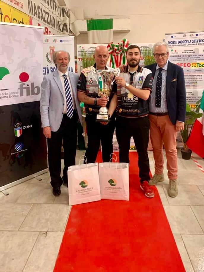 Giocatori di bocce sotto i riflettori segnano la ripresa dell’attività sportiva. Tante presenze, partecipazione e successo di pubblico per la gara regionale a coppie Cat. A, B, C manifestazione organizzata presso gli impianti di Via Aldo Bologni dalla Società Asd Bocciofila Città di Castello con in testa il suo Presidente Paolo Bettacchioli ed il qualificato staff di dirigenti e appassionati di questo sport che vanta importanti tradizioni. Erano iscritte 170 coppie, le eliminatorie si sono svolte nel territorio provinciale e le finali al bocciodromo di Città di Castello. Sul podio, al primo posto la coppia, D.Pieggi e M.Torrini, Aper Pg: al secondo posto A.Landi e R.Rossi della bocciofila di Città di Castello. Alle premiazioni oltre ai vertici Regionali della Fib e dei dirigenti tifernati ha partecipato l’assessorato allo Sport che ha sottolineato la perfetta organizzazione, il notevole livello tecnico degli atleti e i risultati raggiunti dalle società tifernati.