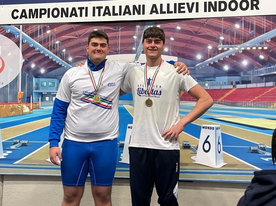 Un nuovo titolo italiano, in atletica, per Città di Castello. il PalaIndoor di Ancona ha ospitato, infatti, i 𝗖𝗮𝗺𝗽𝗶𝗼𝗻𝗮𝘁𝗶 𝗜𝘁𝗮𝗹𝗶𝗮𝗻𝗶 𝗔𝗹𝗹𝗶𝗲𝘃𝗶 𝗜𝗻𝗱𝗼𝗼𝗿 valevoli per l’assegnazione di 40 titoli nazionali per le specialità sprint, mezzofondo, salti, ostacoli, peso e marcia. All’importante appuntamento presente anche l’Atletica Libertas di Città di Castello con il classe 2006 Mattia Pasquetti e Augusto Cecchetti, entrambi per le specialità getto del peso. Sul gradino più alto del podio Pasquetti che si laurea Campione Italiano cat. Allievi con la misura di 15.61 m, nonostante alcuni problemi di salute lo abbiano accompagnato fino a pochi giorni prima della gara.