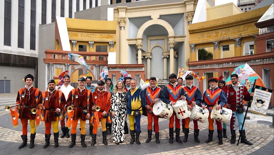 Stanno ritornando dagli Stati Uniti. Erano a New Orleans gli Sbandieratori di Sansepolcro che ancora una volta hanno presenziato al Carnevale della città americana, in Lousiana. New Orleans ha anche proposto dei carri con il Palio di Siena, ma gli alfieri pierfrancescani si sono sempre esibiti tra un nugolo di folla e testimonianza ne è anche la presenza di Rai 2, la Tv di Stato, nella città americana, ma con loro, c’era anche nella foto che pubblichiamo, l’ambasciatrice italiana negli Stati Uniti, Mariangela Zappia. Il Gruppo Sbandieratori nel 2023 celebra i 70 anni di attività, con sponsor la Ihgram e gli alfieri pierfrancescani hanno iniziato subito alla grande con la trasferta negli Stati Uniti. Nell’anno dei 70 anni degli Sbandieratori l’attività è iniziata quindi subito con la partecipazione al Mardi Gras di New Orleans con un gruppo di 18 elementi che ha preso parte a 4 parate ufficiali compresa quella dei Rex, la più importante, mercoledì 21 febbraio. Poi ci sono stati spettacoli alla Loyola e alla Tulane University con gli alfieri pierfrancescani che sono stati ospiti d’onore al gran ballo di carnevale, dove era presente anche l’ambasciatore italiano Zappia. Terminata l’esibizione negli States, il gruppo si preparerà per ripartire alla volta della Spagna dal 24 di marzo.
