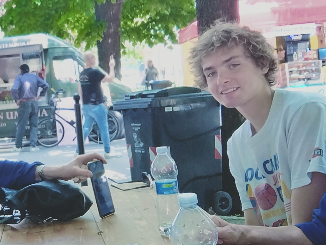 Era in questi giorni a Sansepolcro per poi andare in Svizzera, ma tornare presto nella città pierfrancescana in compagnia della nonna. Luke Perkins, si è appena diplomato al Liceo Shawnee Heights ed ha contribuito alla vittoria della sua squadra, unico a vincere per quattro volte il titolo nel programma maschile di nuoto, trionfando anche per la città e lo Stato del Kansas. Luke è stato allo Street and Food di Sansepolcro e presso lo stand siciliano si è gustato un arancino. Nella sua finale natatoria c’era anche, a difendere i colori del Liceo Shawnee Heights, il nuotatore italiano, di Milano, Riccardo Corazza. Qui vediamo Corazza con i pantaloncini rossi Arena e Luke con gli occhialini e i pantaloncini striati in attesa della staffetta. Luke si è appena diplomato ed il prossimo anno ha intenzione di iscriversi negli Stati Uniti ad Ingegneria. E’ il nipote di una cittadina americana che viene spesso a Sansepolcro nella sua abitazione biturgense.