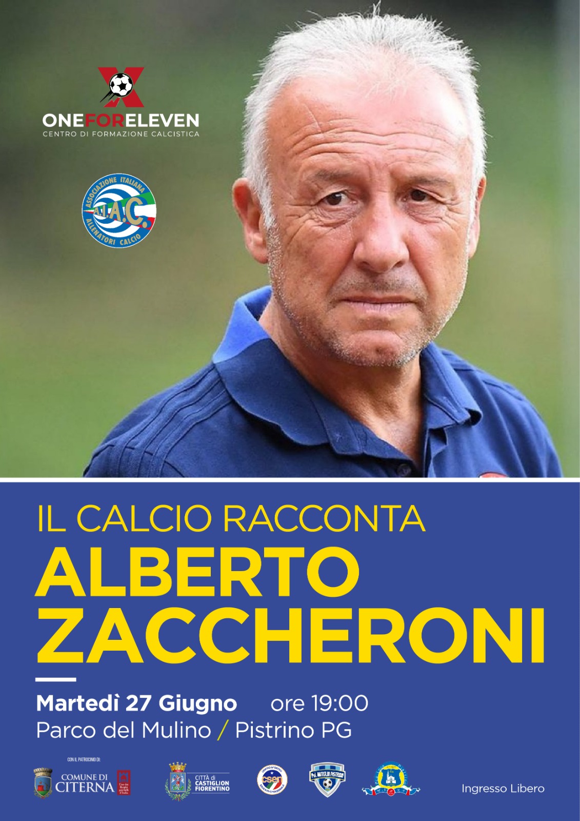 27 giugno 2023 by Patti Fabio Zaccheroni e Falcinelli a Pistrino Calcio Lascia un commento One for Eleven e un altro grande ospite: Alberto Zaccheroni che sarà assieme a Maurizio Falcinelli, il personaggio che ha ideato lo scorso marzo l’iniziativa. Appuntamento alle 19 a Pistrino. Condividi: Fai clic per condividere su X (Si apre in una nuova finestra) X Fai clic per condividere su Facebook (Si apre in una nuova finestra) Facebook Mi piace Caricamento... Correlati