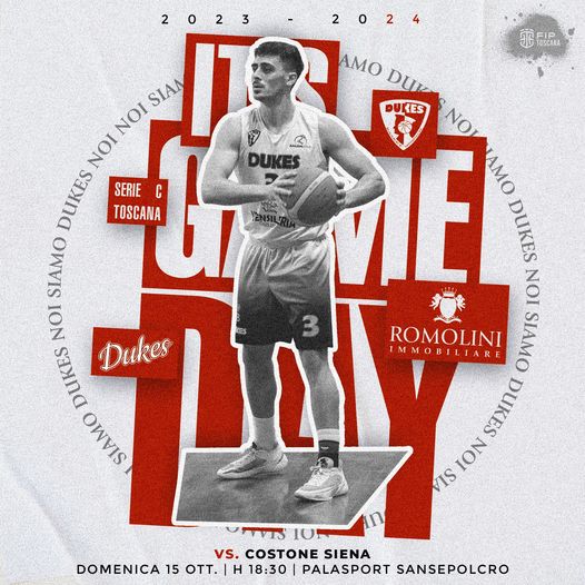 Dopo il bel successo nel derby di Montevarchi nella serie C maschile, della settimana scorsa, la Dukes Romolini tenta di fermare e si tratta di un vero e proprio colpaccio, anche l’imbattuta Costone Siena che guida la classifica. L’appuntamento per gli amanti del Basket è per DOMENICA 15 ottobre alle 18,30 al Palasport di Sansepolcro.
