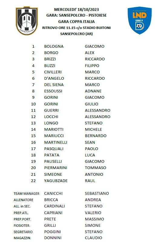 Si rinverdiscono i fasti di tanti anni fa quando il 12 gennaio 1975 (son passati quasi 50 anni), il Sansepolcro di Flaborea battè la Pistoiese per 1-0 con rete di Filippi davanti a circa 3.000 persone. Domani le due squadre si incontrano di nuovo al Buitoni, alle 15, per la Coppa Italia. Un Sansepolcro senza il Presidente Lacrimini, il direttore generale Giovanni Guerri e il Responsabile dell’area tecnica Maurizio Falcinelli.