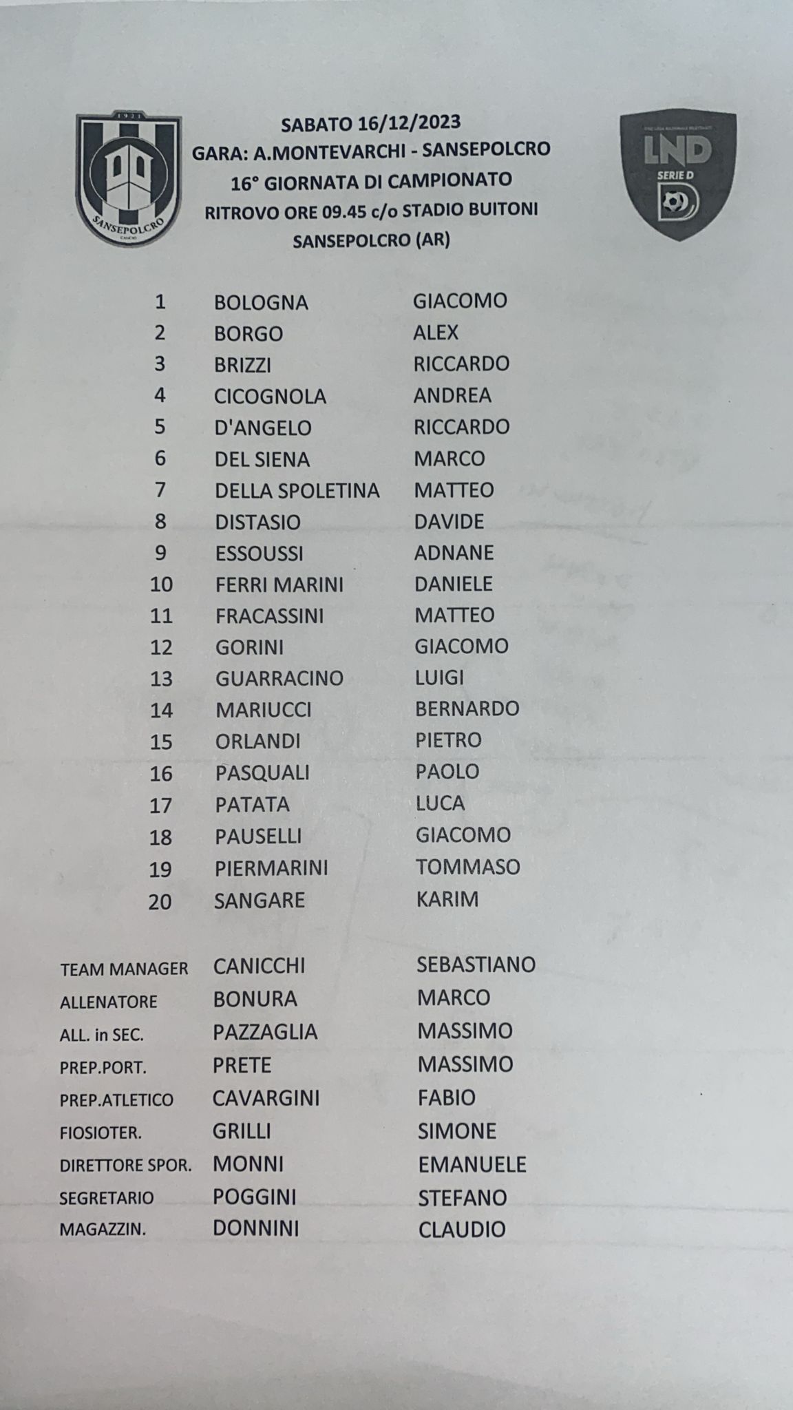 15 dicembre 2023 by Patti Fabio I convocati bianconeri Calcio Lascia un commento Ecco i convocati per la gara di domani, derby n.49 a Montevarchi del Sansepolcro. Si gioca sabato 16 dicembre alle ore 15. Condividi: Fai clic per condividere su X (Si apre in una nuova finestra) X Fai clic per condividere su Facebook (Si apre in una nuova finestra) Facebook Mi piace Caricamento... Correlati
