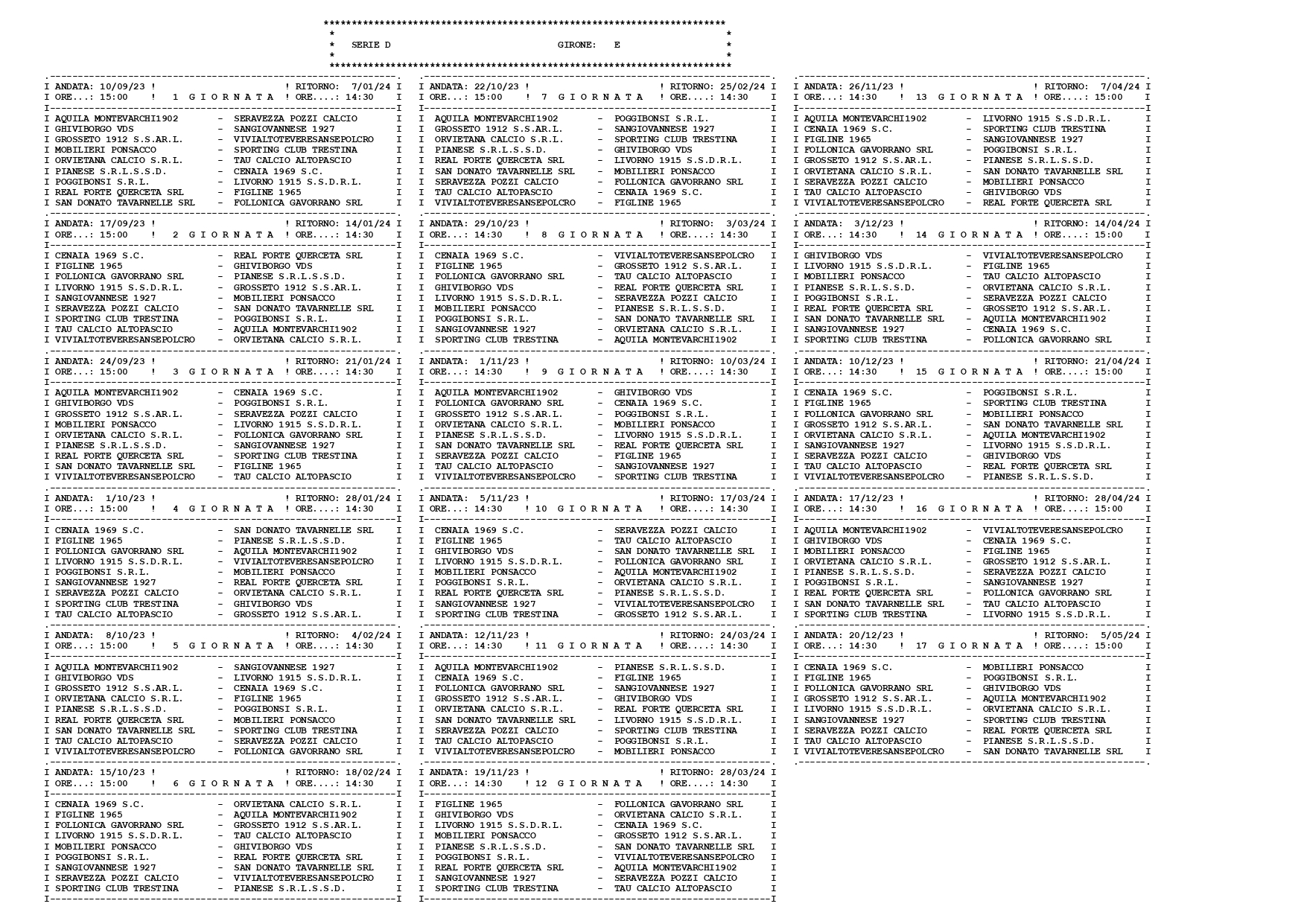 - l’11.2.24 (data prevista per la sesta giornata di ritorno per i gironi C,D,E,F,G,H e, la nona