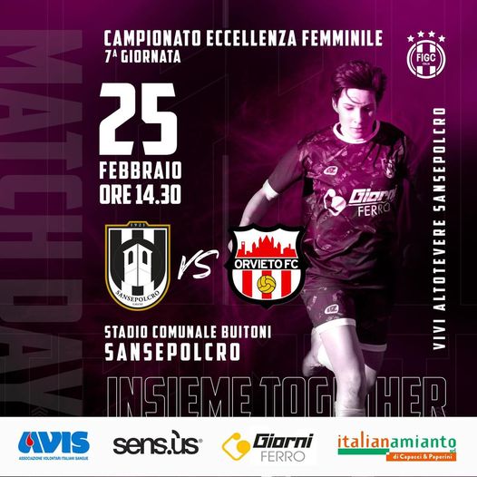 Oggi alle 14,30 una gara super importante per il calcio femminile: la squadra del Sansepolcro, seconda in classifica, affronta la prima della classe, l’Orvietana, che precede le bianconere di tre punti. All’andata ha vinto Orvieto per 4-2, ma Sansepolcro si è aggiudicata la Coppa Italia battendo recentemente le orvietane per 2-1 sul neutro di Tavernelle. Se il Sansepolcro dovesse vincere appaierebbe in vetta l’Orvietana.