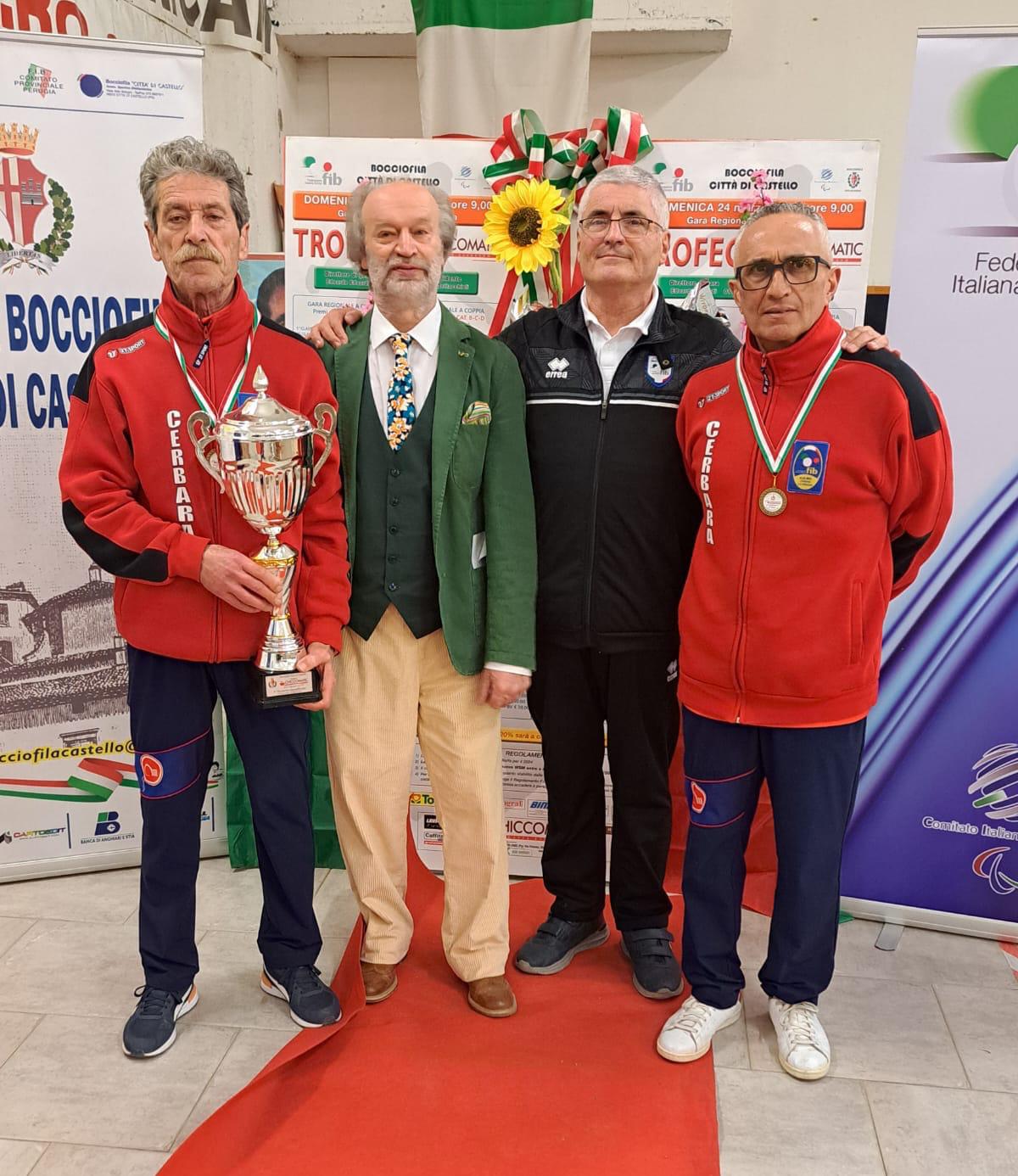 La Bocciofila Cerbara trionfa nel 2° Trofeo Chiccomatic, gara regionale organizzata dalla bocciofila Città di Castello con 332 atleti provenienti da Umbria, Toscana, Marche e Lazio che hanno gareggiato sotto la direzione di gara di Edoardo Edoardi. Nella categoria A, tra gli atleti migliori in competizione, i portacolori del sodalizio tifernate Luigi Bianchini e Stefano Giulietti si sono classificati al primo posto e sul secondo gradino sono saliti i compagni Stefano Puletti e Fabiano Savini. Nella categoria BCD si sono imposti Leonardo Gagliardoni e Lamberto Ghiani (S. Erminio), che hanno preceduto Michele Mazzoni e Riccardo Mazzoni (Cortona Bocce). Al Bocciodromo di Città di Castello si sono svolte le fasi finali della manifestazione, che hanno coronato i turni eliminatori organizzati negli impianti di tutta la provincia di Perugia. Come sempre perfetta l’organizzazione del presidente della Bocciofila Città di Castello Paolo Bettacchioli e dei suoi collaboratori.
