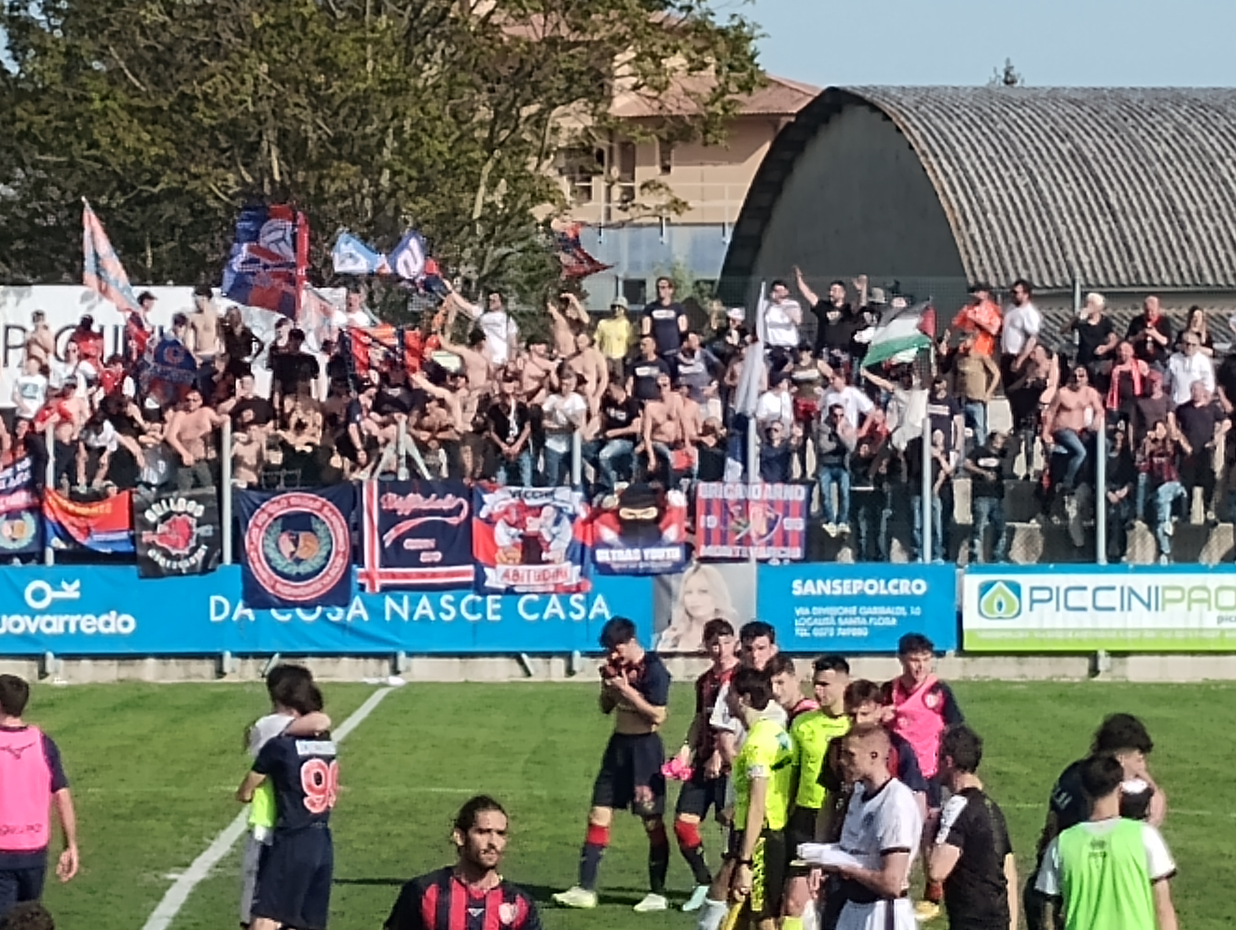 Il Sansepolcro si avvia, mestamente, verso l’Eccellenza Umbra. Solo un miracolo porterebbe i bianconeri dopo la sconfitta nel derby N.50 con il Montevarchi a disputare i play out. Una partita nata male ed iniziata peggio, Ci spieghiamo meglio: Gorini e Mariucci squalificati, poi Piermarini che è stato preso dalla febbre prima del match. Gennaioli non disponibile, Ferri Marini in panchina e l’attaccante Essoussi che si fa espellere per una botta all’avversario con l’arbitro a due passi, dopo 12 minuti. Male, malanno e uscio addosso. Per un puntero di quasi 40 anni, non è stato l’atteggiamento giusto, pur avendo subito tanti maltrattamenti in poco meno di un quarto d’ora. Fatto questo che ha costretto il Sansepolcro a giocare in dieci, a colpire un palo, ma alla fine a soccombere per una rete evitabile di Francalanci a 6 minuti dal termine. Un arbitraggio, quello di Galiffi di Alghero, dobbiamo dirlo, sicuro e positivo, che ha punito quanto c’era da punire e che ha fischiato a ragion veduta forse aiutato solo in parte dai suoi collaboratori, da solo ha retto una gara non facile.