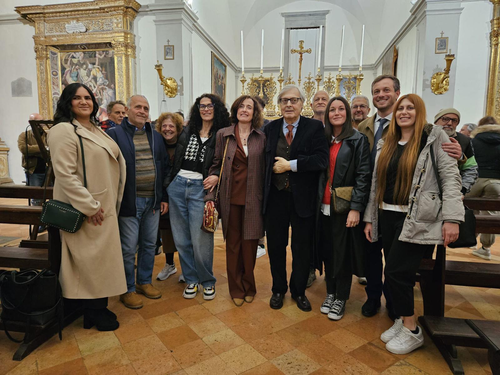 Vittorio Sgarbi dopo la sua presentazione a Sansepolcro, al Teatro Dante, dove ha proposto l’itinerario rinascimentale che tocca Sansepolcro, Monterchi, Citerna e Castiglion Fiorentino, annunciando i capolavori unici di Piero della Francesca, Bartolomeo della Gatta e Donatello assieme ad altri grandi maestri è passato, prima di arrivare a Citerna con il sindaco Enea Paladino, da Fighille per vedere il Piccolo Museo di Arte Contemporanea e poi nella cittadina medioevale dove ha ammirato, nuovamente, la Madonna di Donatello. Durante la sua Lectio Magistralis biturgense il noto critico d’arte, che è stato anche sottosegretario alla Cultura nel Governo Meloni, ha apprezzato il Museo di Fighille, oltre che, accompagnato dal sindaco Paladino, la stupenda opera di Donatello a Citerna.