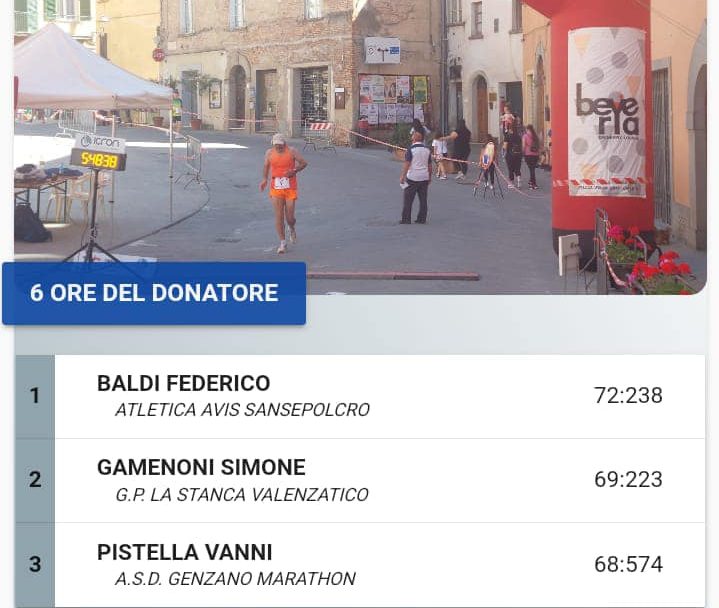 A Foiano della Chiana, Federico Baldi, dell’Atletica Avis di Sansepolcro si è laureato come il nuovo Campione Italiano assoluto IUTA di 6 ore su strada. Ha percorso, infatti, 72,238 Km. aggiudicandosi la 10^ edizione della 6 ore del Donatore inserita nel calendario nazionale IUTA 2024 di Ultramaratona e dei Criterium regionali Zona Centro, prova unica di Campionato Italiano IUTA2024 di 6 ore su strada.