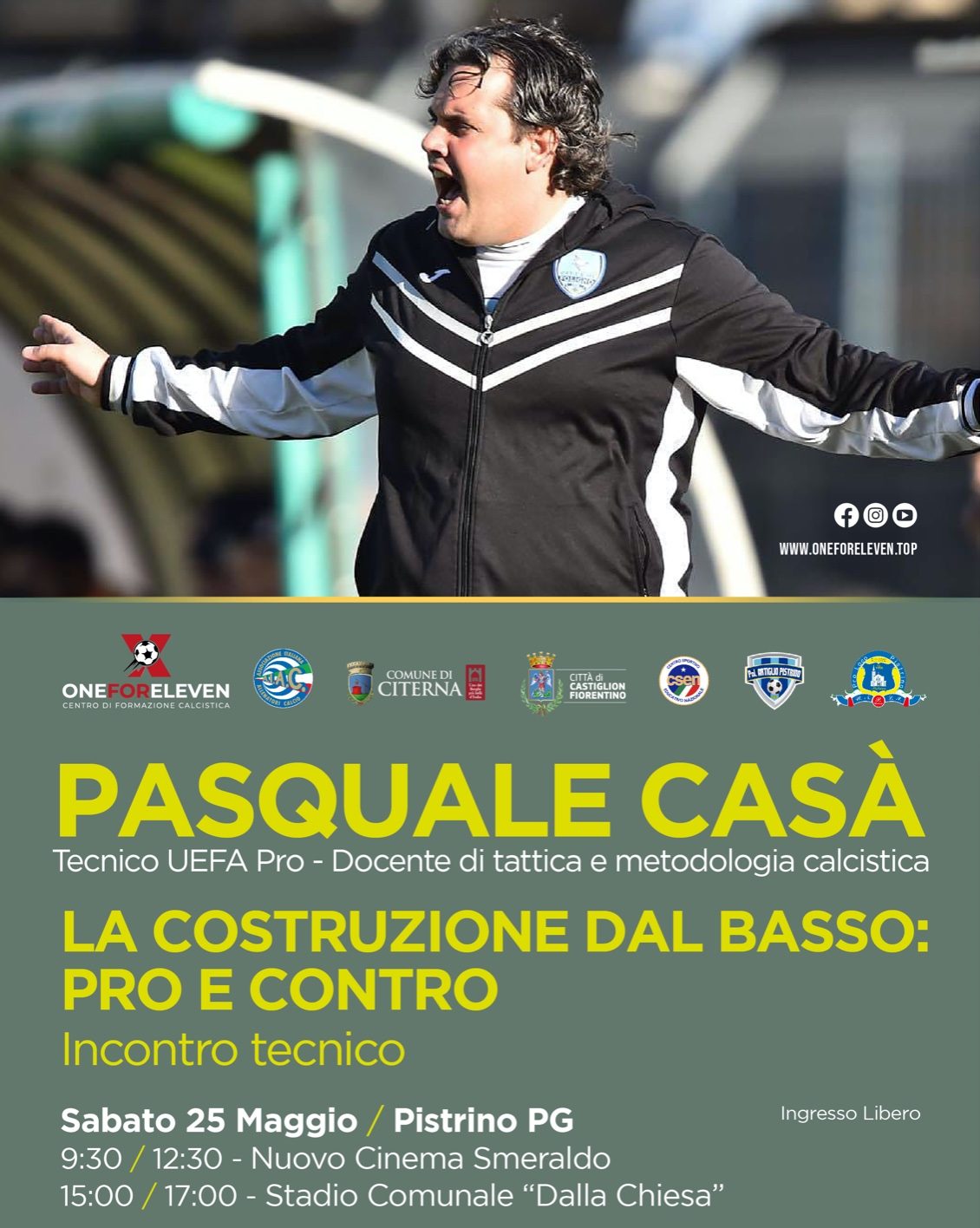 Proseguono gli incontri organizzati da One For Eleven l’attività creata da Maurizio Falcinelli che, iniziata qualche mese fa, è riuscita a portare in Valtiberina o Alto Tevere che dir si voglia, personaggi che nel mondo del calcio hanno fatto la storia. Queste volta, l’appuntamento sarà per sabato 25 maggio quando a Pistrino arriverà Pasquale Casà che si presenterà al Nuovo Cinema Smeraldo per poi recarsi nel pomeriggio allo Stadio dalla Chiesa.
