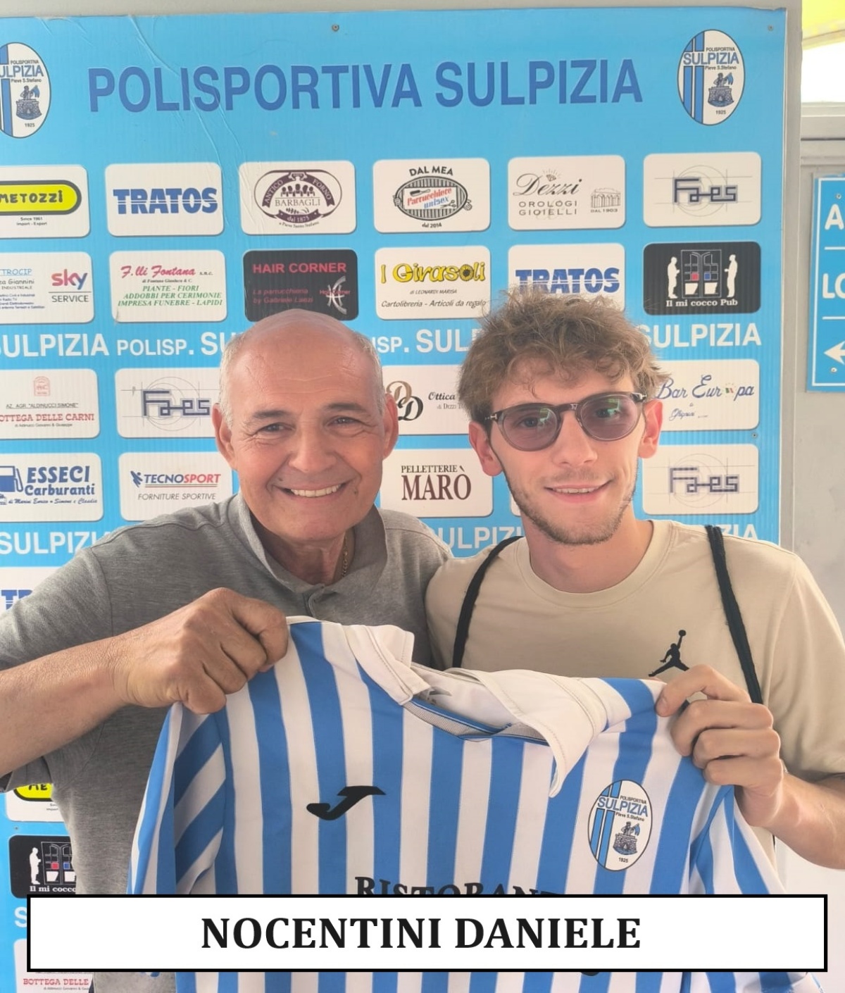 Daniele Nocentini, classe 2002 viene da Anghiari, le ultime due stagioni alla Monterchiese, ha deciso di rimettersi in gioco e di mettersi a disposizione di mister Loddi e della Sulpizia. Le doti ? Corsa, grinta e cuore in mezzo al campo. Qui lo vediamo con il Presidente della Sulpizia di Pieve S.Stefano Ghignoni.