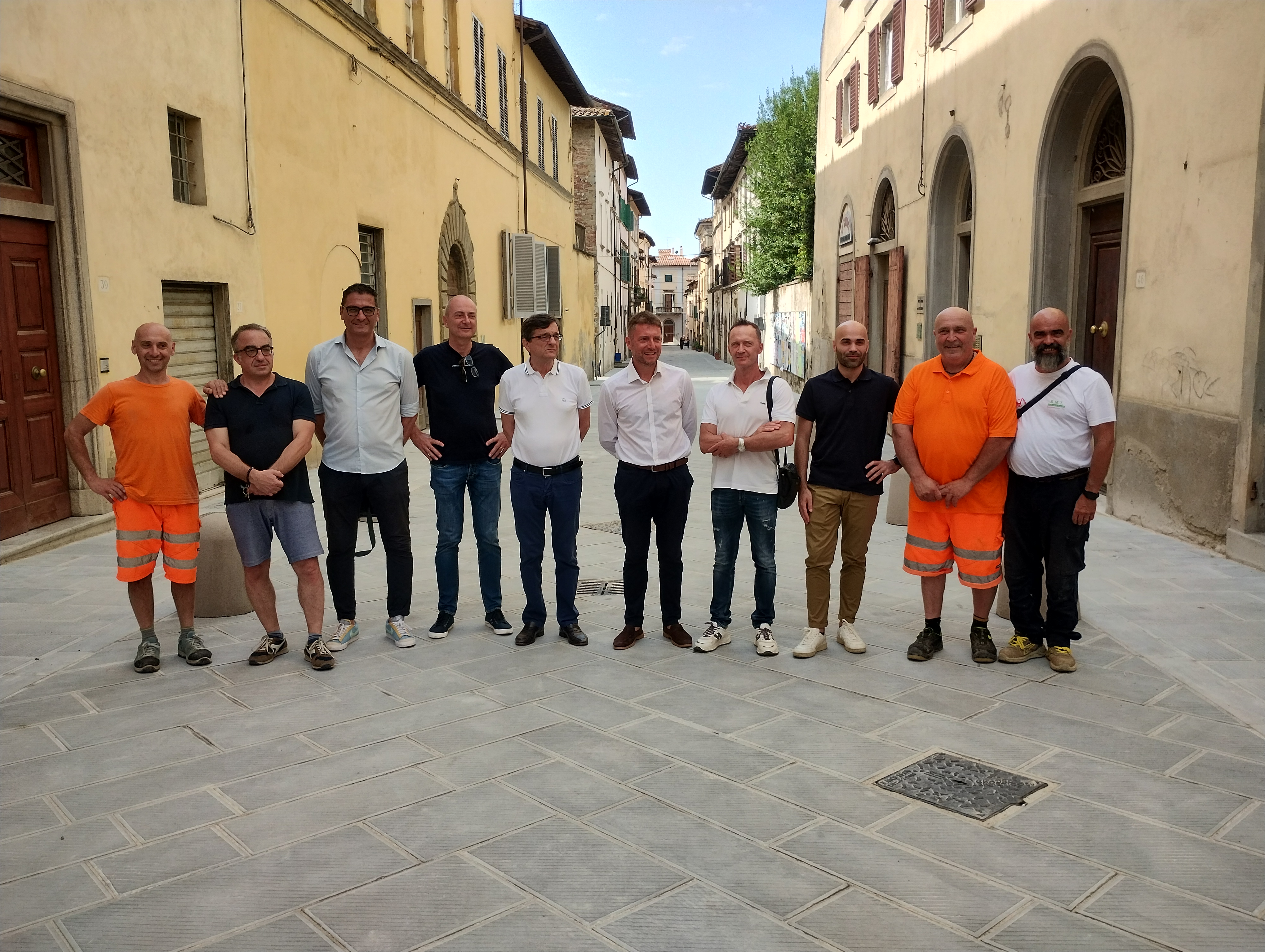 E’ stata inaugurata, questa mattina, lunedì 22 luglio, grazie ai fondi del PNRR, Via Piero della Francesca, o meglio i lavori effettuati in una della arterie più importanti di Sansepolcro. Alla presenza del sindaco Innocenti, del Vice Marzi e dei tecnici, ma di chi ha operato dal 27 novembre scorso, la nuova strada del centro storico cittadino è tornata fruibile. A breve, entro l’estate dovrebbero essere ultimati i lavori di costruzione degli impianti nella ex area Cose di Lana-Boninsegni, mentre si parla di autunno per il termine degli interventi in Viale Veneto.