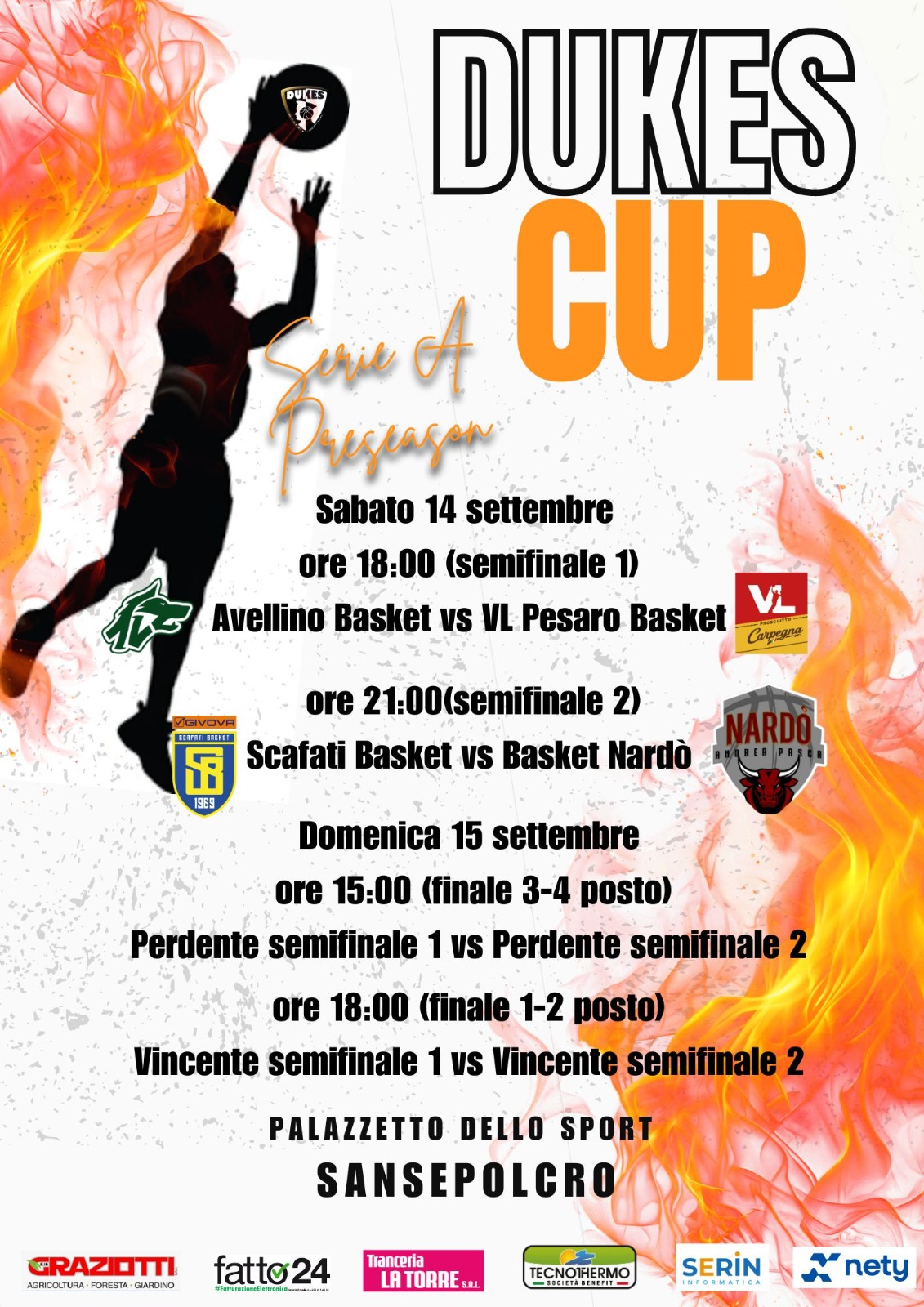 Al Palazzetto dello Sport di Sansepolcro torna la “Dukes Cup”: annuale torneo di Pallacanestro che coinvolge quattro squadre di Serie A impegnate nella preparazione in vista della prossima stagione sportiva.