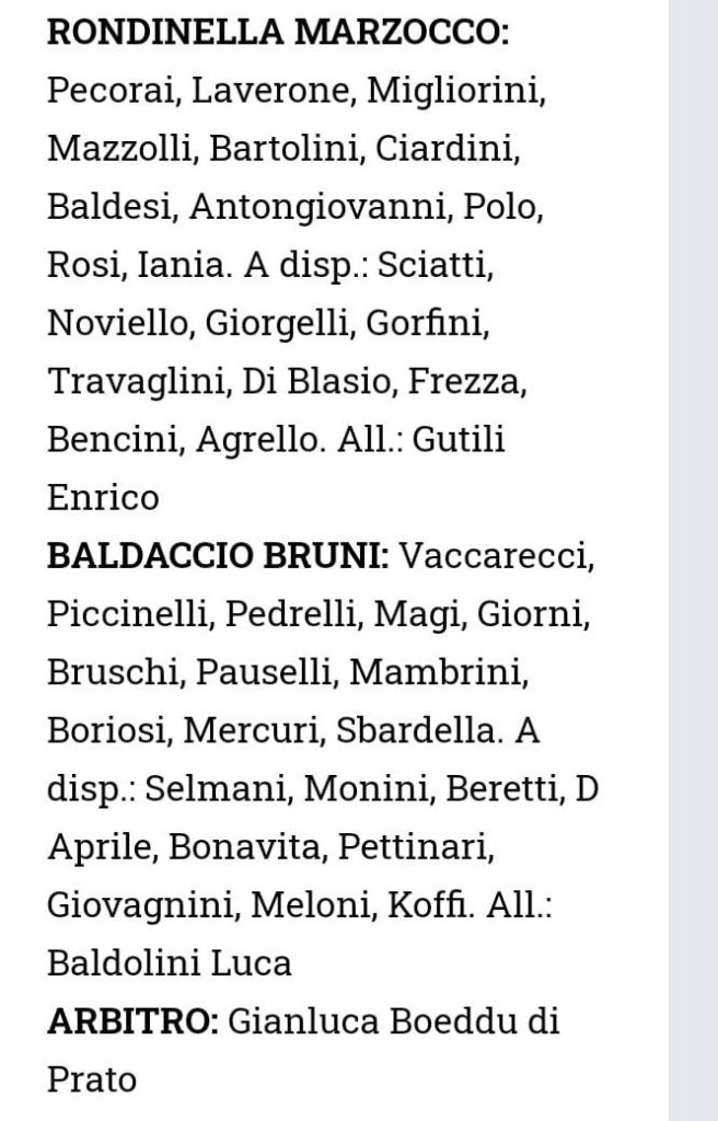 Un pari è arrivato nella prima trasferta in programma per la Baldaccio Bruni Anghiari. Un pareggio per 0-0 ottenuto a Firenze con la Rondinella. Abbiamo detto della prima trasferta ed in effetti la Baldaccio sarà poi impegnata mercoledì a Sinalunga per il ritorno di Coppa Italia alle 20,30 (andata 1-1) e poi domenica 22 settembre per la gara in Mugello contro la Fortis. Dopo il pari di sette giorni fa, con la matricola Affrico, era questa con la Rondinella una gara difficile che il tecnico Baldolini ha ben preparato con il suo staff. E’ dovuto uscire Piccinelli, per una botta ricevuta, ma la Baldaccio ha giocato poi in dieci per l’espulsione di Sbardella. Un legno per parte, ma quello che fa comodo è il punto conquistato.