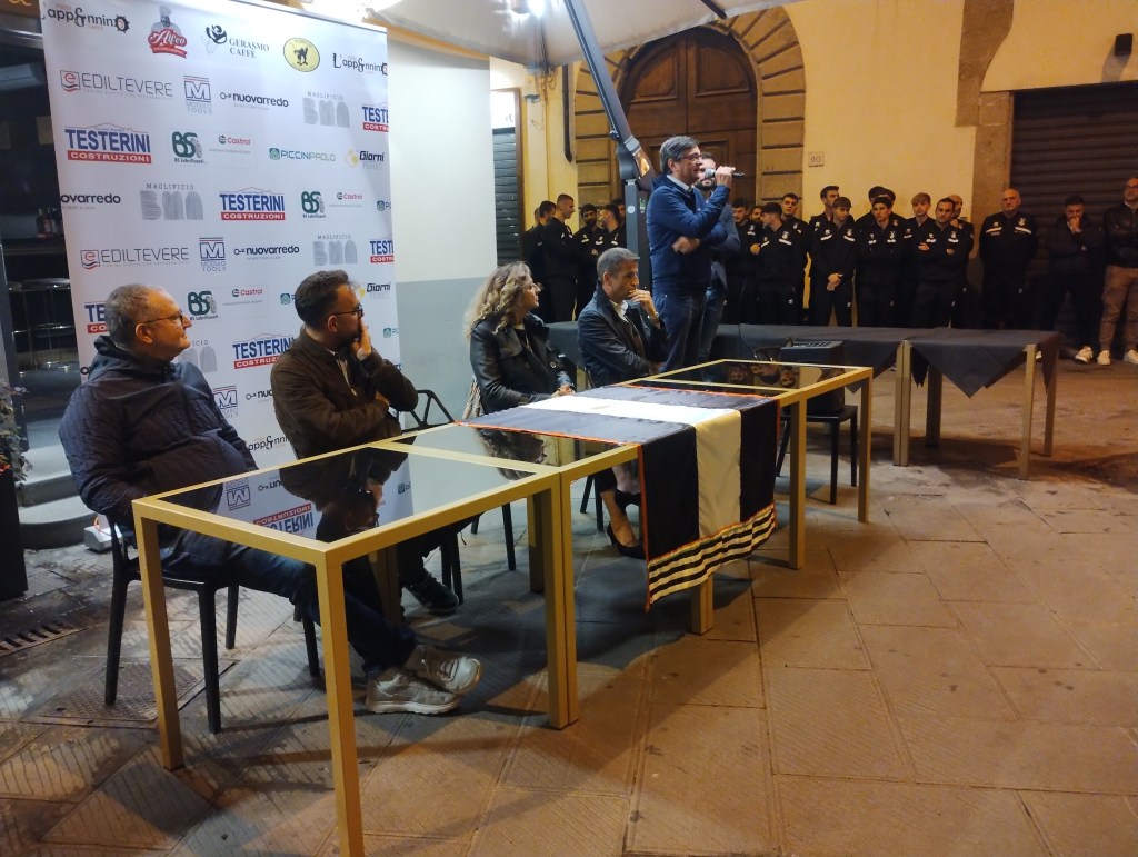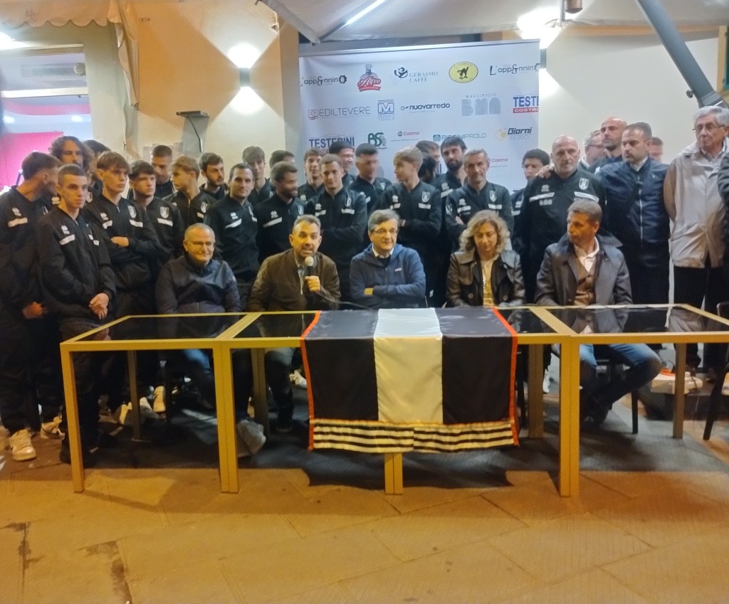 Simpatica serata organizzata dal ViviAltotevere Sansepolcro per presentare la squadra bianconera che sta affrontando il Campionato di Eccellenza Umbra. Tutti i giocatori a disposizione del tecnico Antonio Armillei e del suo staff, sono stati salutati grazie all’intervento anche del Caffè Gerasmo, del Bar Appennino, del Pubblino e della Schiacceria da Alfeo che con la loro arte culinaria hanno dato il benvenuto, nel magico “Triangolo”, a tutta la Società, presieduta da Marcello Brizzi, ai giocatori, ad Armillei, allo staff che si sono poi….cimentati in attesa di ospitare il Terni Fc, grande favorita alla vittoria finale, domenica prossima, attorno ai ricchi tavoli imbanditi. Presente anche il sindaco Fabrizio Innocenti che è, tra l’altro, assessore allo Sport di Sansepolcro.