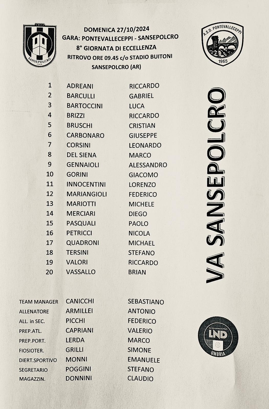 26 ottobre 2024 by Patti Fabio Eccellenza Umbra Calcio Lascia un commento Partita delicata per il Sansepolcro a Pontevalleceppi, ecco i convocati: Condividi: Condividi su X (Si apre in una nuova finestra) X Condividi su Facebook (Si apre in una nuova finestra) Facebook Mi piace Caricamento... Correlati