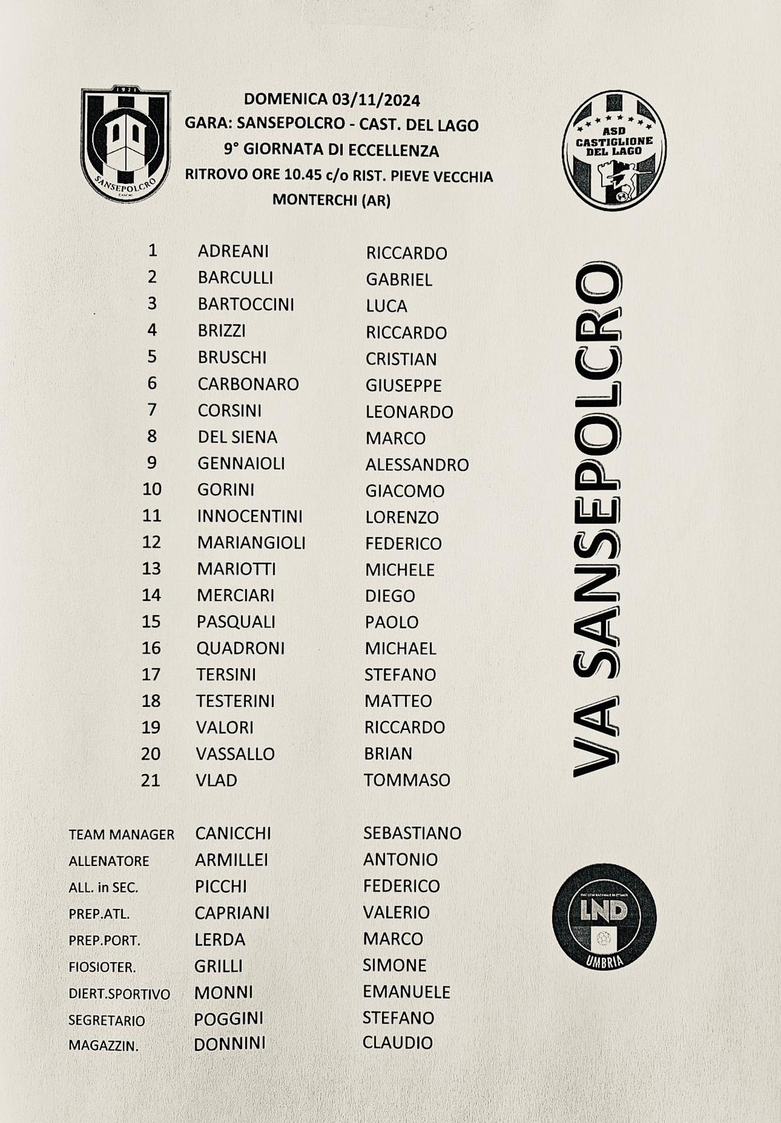 Mancherà Petricci, squalificato, nel Sansepolcro, il Pierantonio sarà a Bastia per una gara non facile. Il Sansepolcro ospiterà il fanalino di coda Castiglione del Lago che ha nel direttore Generale Giovanni Guerra, l’ex di turno. Squalificati nella squadra lacustre il tecnico Fossati e il difensore Roscini, ma sarà una gara tutta da vedere con il Sansepolcro che deve ottenere i tre punti in palio. Questi i convocati del Sansepolcro, per cui Armillei potrebbe mandare in campo: Vassallo, Carbonaro, Merciari, Gorini, Adreani, Tersini, Mariotti, Bruschi, Pasquali, Valori, Gennaioli. Ad Armillei, viste le condizioni settimanali e l’incontro pareggiato ad Ellera che ha permesso al Sansepolcro di centrare il primo obiettivo della stagione, ovvero la finale di Coppa Italia di Eccellenza Umbra, starà a valutare la situazione del suo undici.