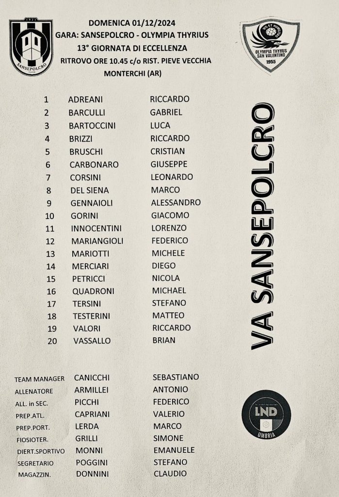Tutti gli altri a disposizione per cui la squadra potrebbe scendere in campo con Mariangioli (2004), Del Siena, Merciari (2006), Gorini, Tersini, Adreani, Gennaioli (2005), Bruschi, Bartoccini, Valori, Brizzi. In panchina ci potrebbero essere: Vassallo, Carbonaro, Mariotti, Corsini (2006), Barculli (2006), Innocentini (2006), Petricci, Quadroni, Testerini (2007)