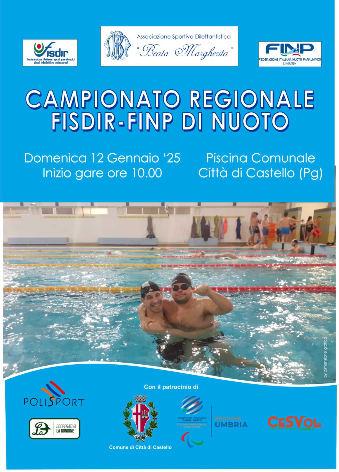 Domenica 12 Gennaio si svolgeranno nella piscina comunale di Città di Castello, i campionati di nuoto FISDIR (Federazione Italiana Sport per disabilità intellettivo-relazionale). Saranno presenti gli atleti di Sportinsieme di Foligno, Buonconvento nuoto con atleti di Terni e l’ASD Beata Margherita di Città di Castello, organizzatrice con Polisport della manifestazione.
