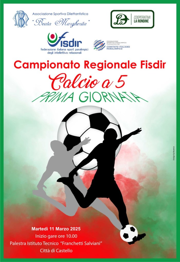 Martedì 11 marzo, a partire dalle ore 10, presso la palestra “Franchetti Salviani” di Città di Castello, si terrà la prima giornata del campionato regionale di Calcio a 5 Umbro.