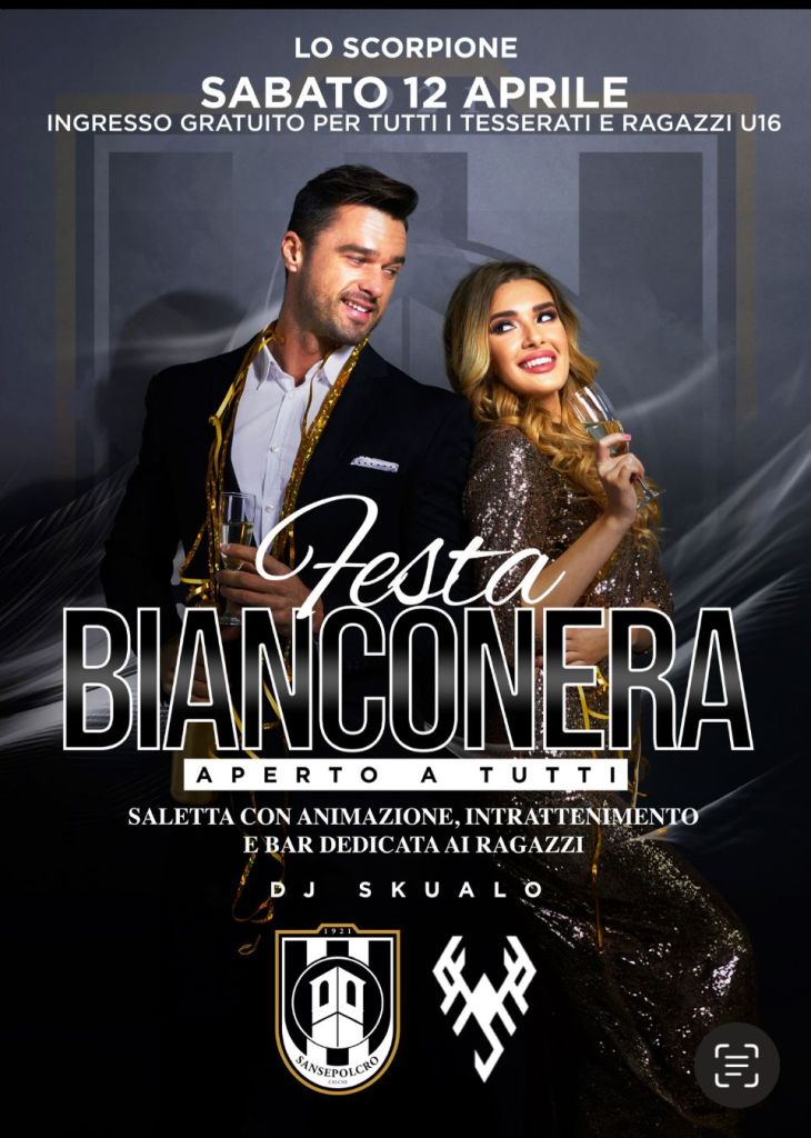 Il Vivi Altotevere Sansepolcro ha annunciato l’organizzazione della 𝑭𝒆𝒔𝒕𝒂 𝑩𝒊𝒂𝒏𝒄𝒐𝒏𝒆𝒓𝒂, in programma per la serata di 𝒔𝒂𝒃𝒂𝒕𝒐 𝟏𝟐 𝒂𝒑𝒓𝒊𝒍𝒆 presso il locale 𝑳𝒐 𝑺𝒄𝒐𝒓𝒑𝒊𝒐𝒏𝒆.
