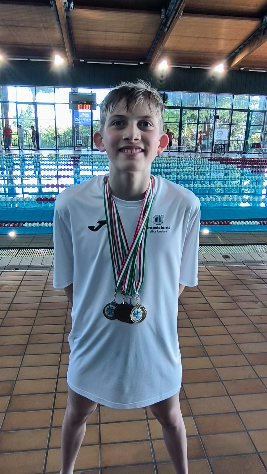 Campione di nuoto, colleziona medaglie e si prepara per gli impegni futuri. Per il giovanissimo nuotatore tifernate, Riccardo Dell’Omarino, classe 2014, è inziato un nuovo periodo. Il nuotatore che ha conquistato un titolo umbro di categoria fra gli Esordienti B e cinque medaglie complessive alle finali del campionato regionale, disputatesi alla piscina comunale “Pellini” di Perugia ha solo 11 anni. Il portacolori della società sportiva Aretè ha dominato i 50 farfalla con il tempo di 36”60 che gli è valso l’oro, poi a livello individuale ha aggiunto due bronzi: nei 100 stile libero in 1’14”30 e nei 100 misti in 1’23”20. Le altre due medaglie provengono dalle staffette: argento nella 4×50 mista e di nuovo bronzo nella 4×50 stile libero. Dell’Omarino continua pertanto la sua serie di risultati importanti, già ottenuti in precedenti appuntamenti, dimostrando di essere una valida promessa del nuoto altotiberino. Il sindaco di Città di Castello, Luca Secondi e l’assessore allo sport, Riccardo Carletti si sono congratulati con Riccardo per i risultati straordinari nello sport che ama e che pratica con il sorriso e passione: “Bravo Riccardo siamo orgogliosi di te”.
