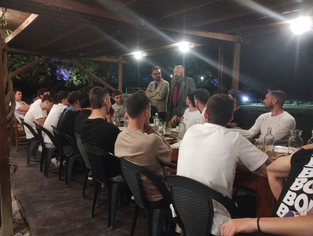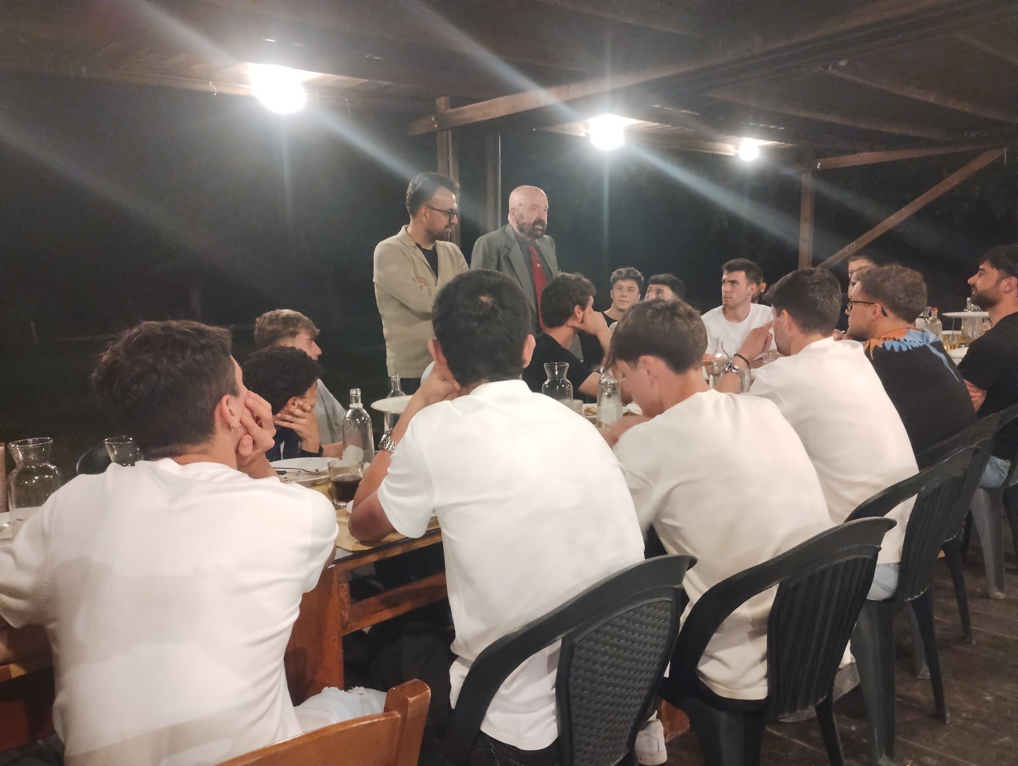 Un incontro ed una cena che Ugo Russo, da tutti conosciuto per la trasmissione RAI “Tutto il calcio Minuto per Minuto”, ma perchè è anche Cittadino Onorario di Sansepolcro, ma al tempo stesso Presidente Onorario del Vivi Altotevere Sansepolcro, presente nella città pierfrancescana per portare il suo importante contributo. Un incontro che Ugo Russo, partecipando in questi quattro giorni, alla vita cittadina, ha avuto in due distinte serate, la prima con i dirigenti dl Vivi Altotevere e poi con la squadra bianconera che ha ottenuto le vittorie nel Campionato di Eccellenza Umbra e nella Coppa Umbra, sfiorando la finalissima nazionale di Coppa persa in semifinale solo ai calci di rigore con quel Rovato Vertovese che ha poi vinto battendo il Barletta per 3-1. Alla serata di martedì 3 giugno oltre la squadra c’erano il Presidente Marcello Brizzi, il ds Emanuele Monni, i giornalisti Davide Gambacci e Fabio Patti. Per tutti Ugo Russo ha avuto parole incoraggianti in vista della serie D ed ha donato ai giocatori un ricordo della magnifica impresa. La squadra ha omaggiato il noto giornalista con una maglia autografata da tutti i giocatori ed un gagliardetto che capitan Gorini ha voluto dare personalmente ad Ugo Russo. Al termine della serata si è unito il sindaco Fabrizio Innocenti che era in comune per preparare assieme agli organizzatori il match di sabato 7 giugno tra Porta Romana e Porta Fiorentina.