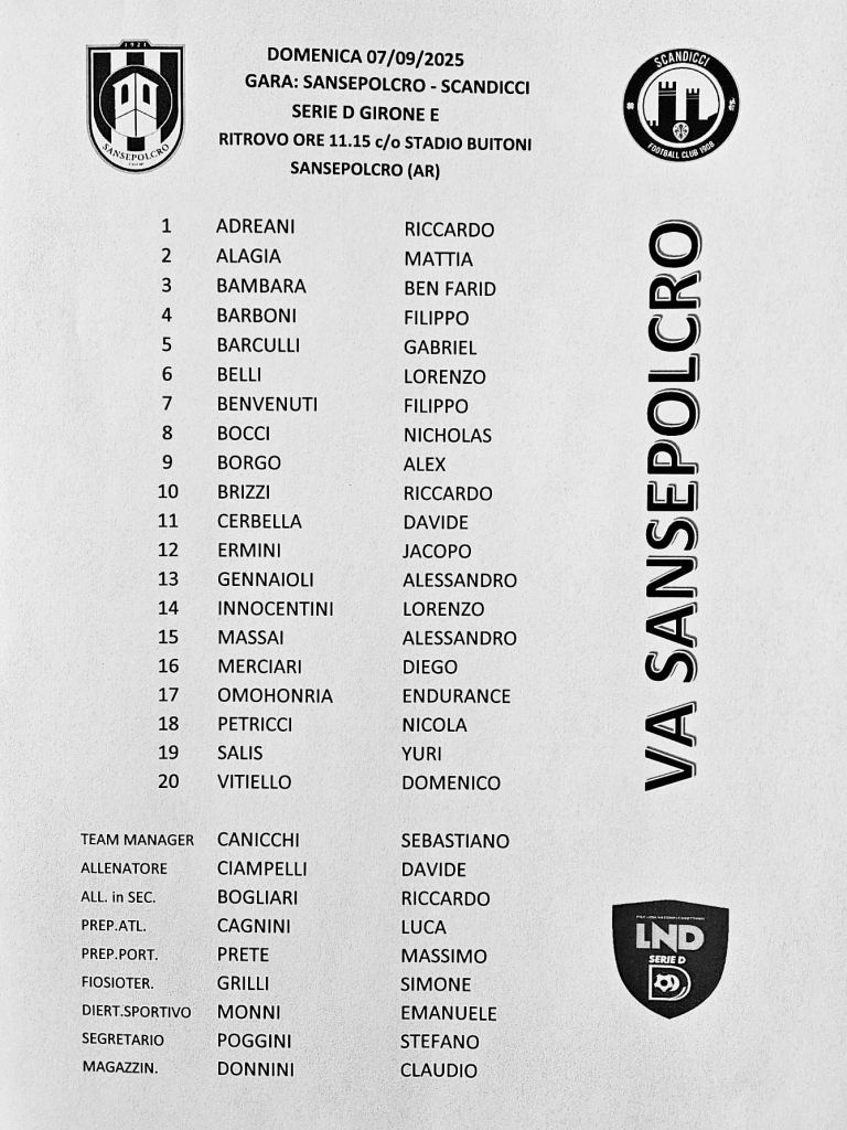 Come avevamo anticipato, Cerbella dal Gubbio al Sansepolcro. Il difensore bianconero è stato ufficializzato oggi e il tecnico Davide Ciampelli lo ha subito convocato per l’esordio del Sansepolcro, al Buitoni, domenica 7 settembre, alle 15, per il Campionato di serie D. Questi i convocati dall’allenatore bianconero: contro l’altra matricola del Torneo, lo Scandicci. Nel Sansepolcro mancheranno Fumanti e Pasquali, assenti Corsini e Cirignoni, ma è stato convocato Juri Salis per cui la probabile formazione potrebbe essere: Bambara, Barboni, Merciari, Omohonria, Borgo, Adreani, Belli, Massai, Vitiello, Alagia, Bocci. In panchina ci potrebbero andare: Ermini, Innocentini, Barculli, Benvenuti, Brizzi, Cerbella, Gennaioli, Petricci, Salis.