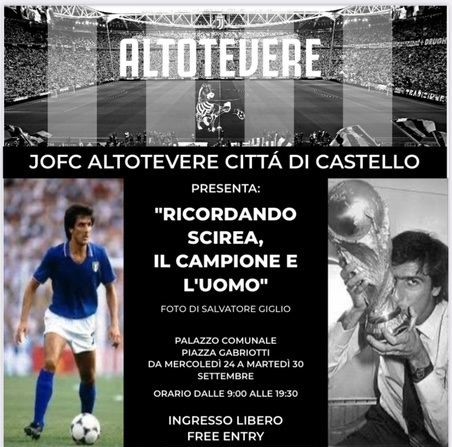 Le vittorie, le partite epiche, i colpi dei fuoriclasse sono il pane quotidiano di tutti i tifosi di calcio, ma, accanto a soddisfazioni ed emozioni che restano nel cuore, a far sognare e far viaggiare la mente nei ricordi sono spesso anche i cimeli dei giocatori più rappresentativi e dei risultati più importanti, insieme alle immagini che hanno fatto la storia. Chi tifa Juventus, ma ancor più chi ama il calcio, ha una tappa obbligata nell’atrio del Comune di Città di Castello, in piazza Gabriotti, dove lo Juventus Club Altotevere Città di Castello del presidente Sandro Crocioni ha allestito la mostra fotografica dal titolo “Ricordando Scirea, il campione e l’uomo”, con gli scatti indimenticabili di Salvatore Giglio. Un’esposizione che potrà essere visitata a ingresso libero fino a martedì 30 settembre, tutti i giorni dalle ore 9.00 alle ore 19.00, il sabato e la domenica dalle ore 9.00 alle ore 20.00. Un tuffo nel passato sulle tracce del capitano gentiluomo che piaceva a tutti, ritratto nei momenti importanti vissuti con la Juventus e in nazionale, vicino a compagni mitici come Antonio Cabrini, Michel Platini, Paolo Rossi, Dino Zoff. Le fotografie di Giglio colgono l’anima dello Scirea uomo e giocatore, dalle immagini con la famiglia alla corsa gioiosa insieme ai compagni con la coppa del mondo del 1982 in mano, fino agli abbracci in campo e ai gol. A sbalordire nel percorso della mostra sono le maglie originali di Scirea e quelle, con dediche e autografi, che hanno indossato giocatori iconici come Roberto Bettega, Antonio Cabrini, Alessandro Del Piero, Michel Platini, Paolo Rossi, Alessio Tacchinardi, Zinedine Zidane e addirittura Diego Armando Maradona,