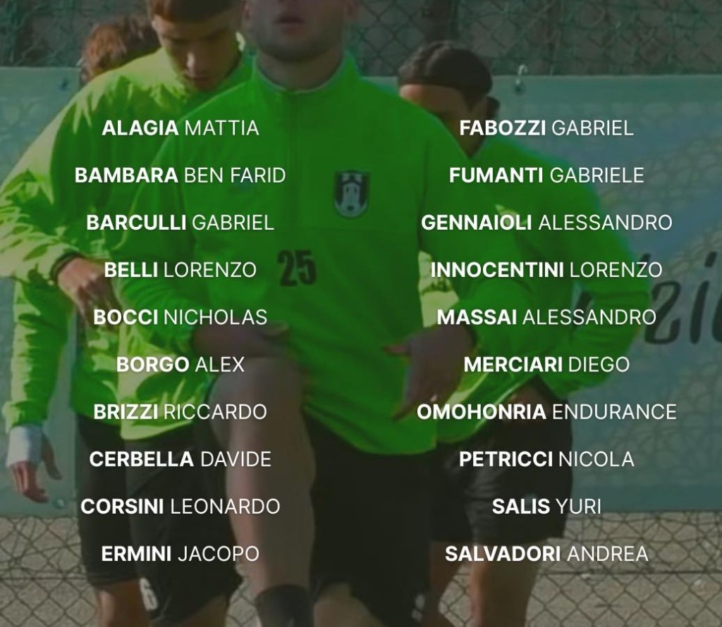 Arriva a Sansepolcro la capolista Siena. La squadra che ha la miglior difesa del campionato con Ciampelli che ha convocato questi giocatori dovendo fare a meno delle punte Vitiello e Pasquali, oltre che del difensore Barboni, vista la lesione al crociato del classe 2007 bianconero e di Adreani per un problema alla spalla.