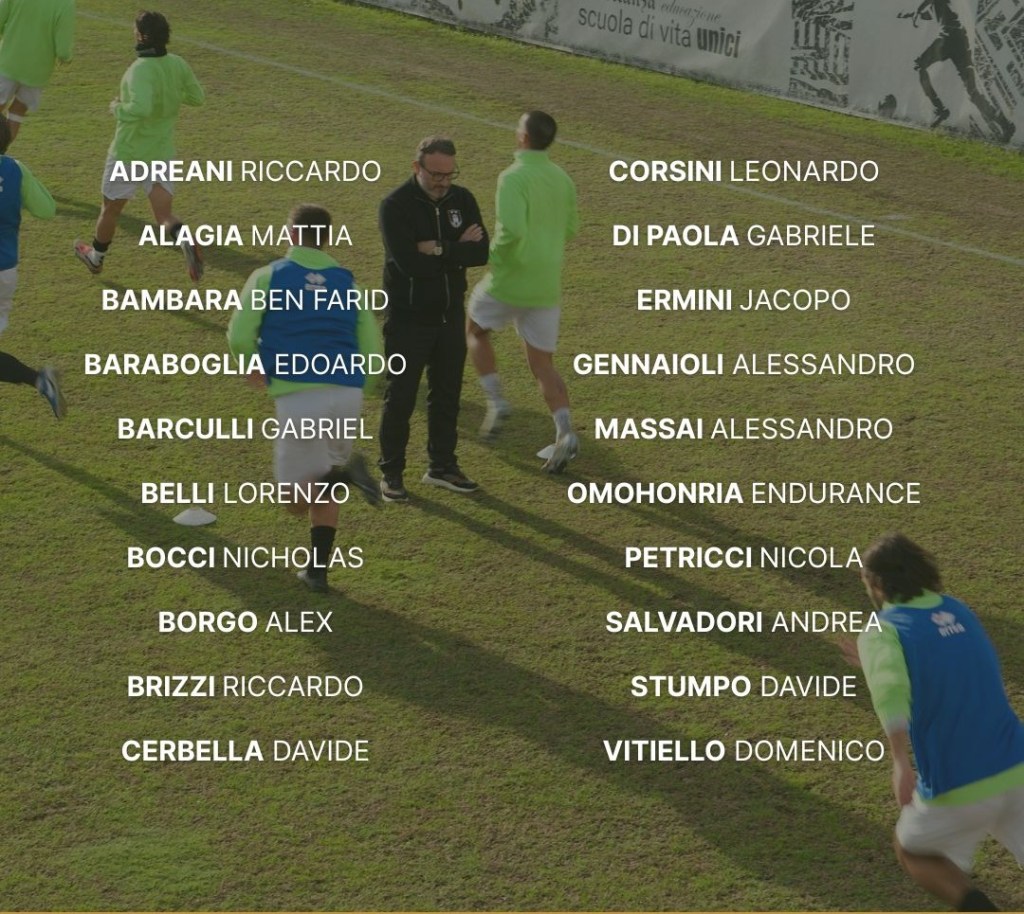 Mister Ciampelli ha convocato questi giocatori per la partita che inizierà alle 14,30 e sarà diretta da Gabriele Sciolti di Lecce: