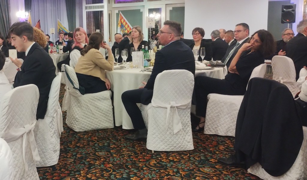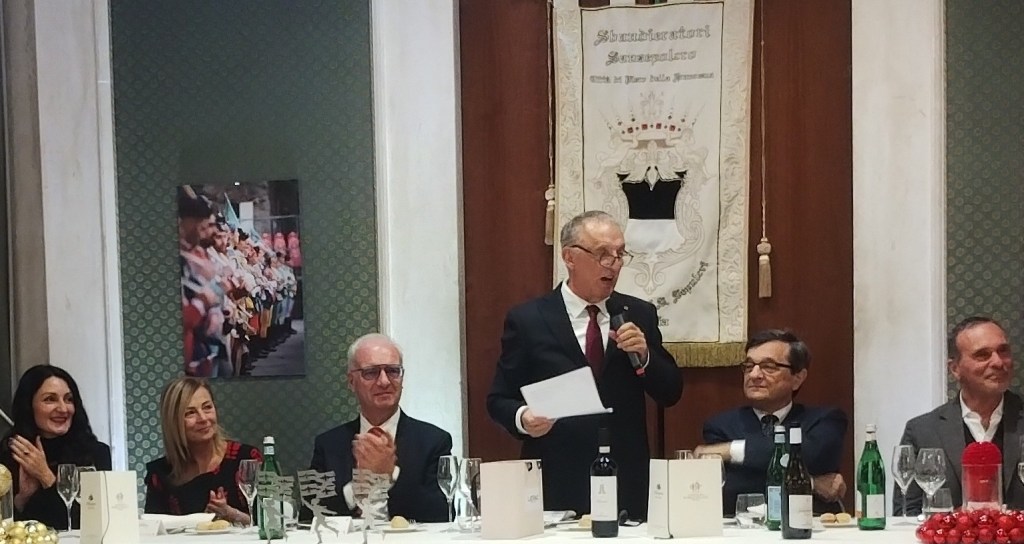 E’ stata una bella serata quella del Gruppo Sbandieratori di Sansepolcro. Alla presenza del sindaco Fabrizio Innocenti di esponenti politici sia locali che provinciali, del direttore della Cassa di Credito Cooprativo di Anghiari si è svolta al Borgo Palace Hotel la cena degli auguri del Gruppo Sbandieratori. Presenti anche gli ospiti, giunti dalla Germania, della città di Neuburg. Tra un filmato e l’altro, ma all’inizio della serata, Giuseppe Del Barna, Presidente del Gruppo, ricordando i tanti sponsors della vallata, ha delineato quanto fatto nel 2025 ed ha presentato i programmi per il 2026 sia in Italia che nel mondo intero che includerà la presenza del Gruppo in Cina, Giappone, Stati Uniti e Messico, oltre all’Europa che vedrà la città tedesca di Mindelheim festeggiare i 50 anni di amicizia. Sono inoltre previste le elezioni che di fatto rinnoveranno il consiglio direttivo del Gruppo Sbandieratori di Sansepolcro e si penserà, in particolare, ovviamente, alla nuova palestra che sorgerà, o dovrebbe nascere accanto allo Stadio Buitoni da un’idea del Gruppo. Sono state ricordate le tante donne uccise in Italia con una struggente poesia di Donatella Zanchi, recitata da Giuliana Del Barna. E la serata è andata avanti con importanti dichiarazioni.