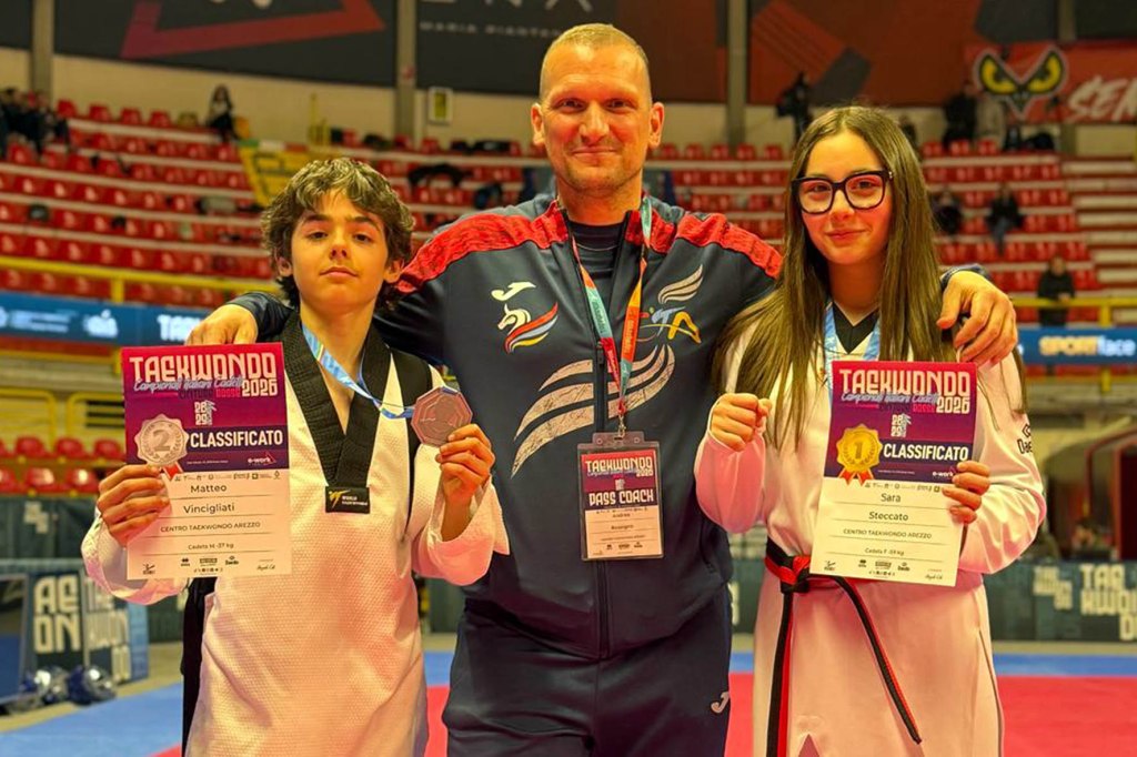 Un oro e un argento per il Centro Taekwondo Arezzo ai Campionati Italiani Cadetti. La manifestazione nazionale giovanile è andata in scena a Busto Arsizio alla presenza di ragazzi e ragazze di cinquantatré società di tutta la penisola che hanno combattuto nelle diverse categorie di peso, trovando tra gli assoluti protagonisti due atleti aretini: Sara Steccato si è laureata campionessa d’Italia nei -59kg e Matteo Vincigliati è vicecampione d’Italia nei -37kg.