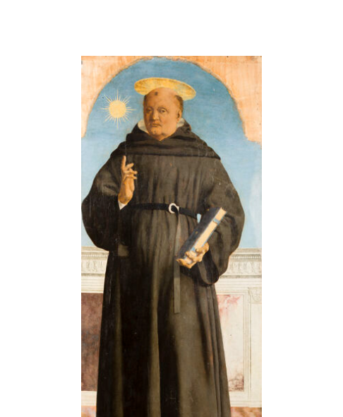 San Nicola da Tolentino (nella foto) l’unico santo del capolavoro rimasto in Italia: è una tavola, conservata al Museo Poldi Pezzoli di Milano e faceva parte del polittico eseguito da Piero della Francesca, per l’altare maggiore della chiesa di Sant’Agostino a Borgo Sansepolcro. Nicola da Tolentino, vissuto nella seconda metà del Duecento, fu canonizzato nel 1446.