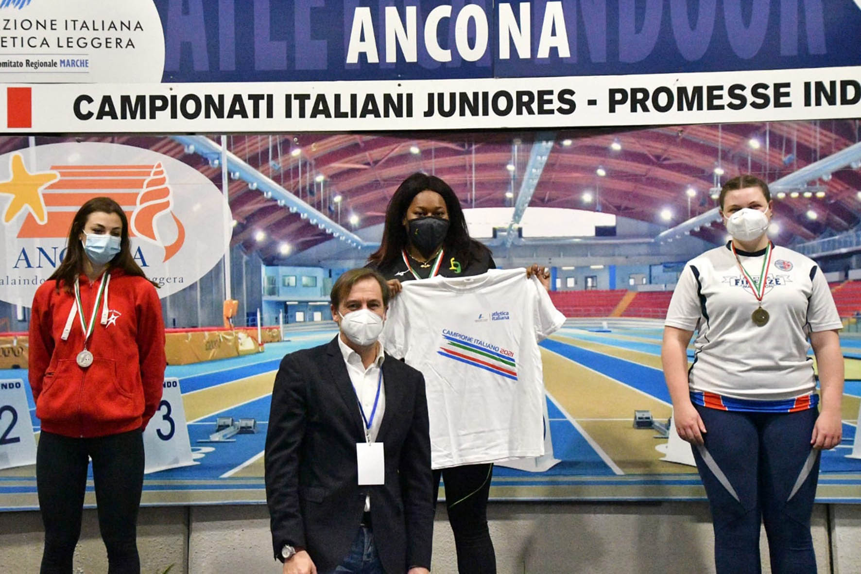 Una medaglia tricolore per Chiara Salvagnoni. L’aretina, nata nel 2000, ha gareggiato ai Campionati Italiani Promesse Indoor di Ancona ed ha archiviato la manifestazione con una medaglia di bronzo nel lancio del peso, dando seguito al terzo posto già conquistato nel 2020 e confermandosi così tra le migliori atlete della disciplina. I 12.24 metri ottenuti al terzo lancio hanno permesso di blindare il podio e di arricchire un palmares che vanta anche due titoli italiani vinti nel 2017 e nel 2019 nelle categorie Allievi e Juniores, oltre ad una convocazione in nazionale.