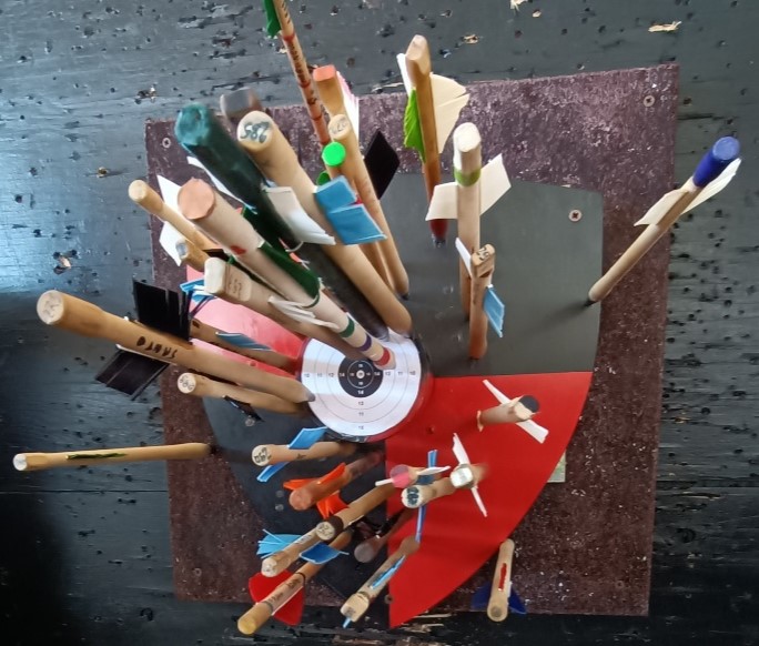 Il Palio quest’anno è stato dipinto dai ragazzi del centro accoglienza Aldo Moro che hanno realizzato un bersaglio dai cerchi concentrici attraversati da linee che convergono verso il centro, metafora del cuore, vero bersaglio verso cui destinare la cura della persona.