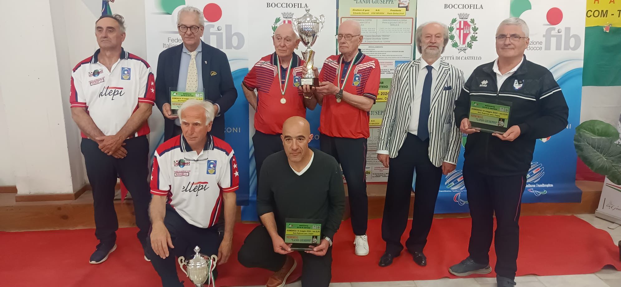 In ricordo di Giuseppe Landi, grande sportivo e tifernate doc. E’ andato in archivio nel migliore dei modi alla bocciofila Città di Castello, un evento di rilievo con disputa della gara Regionale a coppie denominata trofeo “Giuseppe Landi”. la presenze ha visto 129 coppie con formazioni di categoria A e separate B.C.D. Presenze di formazioni di alto livello da tutto il centro Italia e una coppia dalla Sardegna, precisamente da Sassari. Tutto il consiglio direttivo della Bocciofila Città di Castello ha collaborato insieme al presidente Paolo Bettacchioli per lo svolgimento della manifestazione che ha ricordato Giuseppe Landi, giocatore di talento, “bocciatore” sopraffino: è stato anche un valente giocatore di calcio ed ha militato anche nella squadra della sua città, con ottimi risultati. Le eliminatorie si sono svolte in tutta la provincia di Perugia per poi concludersi alla bocciofila di Città di Castello alla presenza del presidente regionale FIB Umbro Brutti, del sindaco e della assessore allo Sport: il tutto coadiuvato dal presidente della bocciofila, Paolo Bettacchioli, da sempre in prima linea con ottimi risultati nell’organizzazione di eventi sportivi di livello nazionale. L’assessore allo sport del comune di Città di castello si e’ congratulato per la grande partecipazione, per l’organizzazione della gara e il livello tecnico espresso nel ricordo di un grande tifernate e sportivo, Giuseppe Landi.