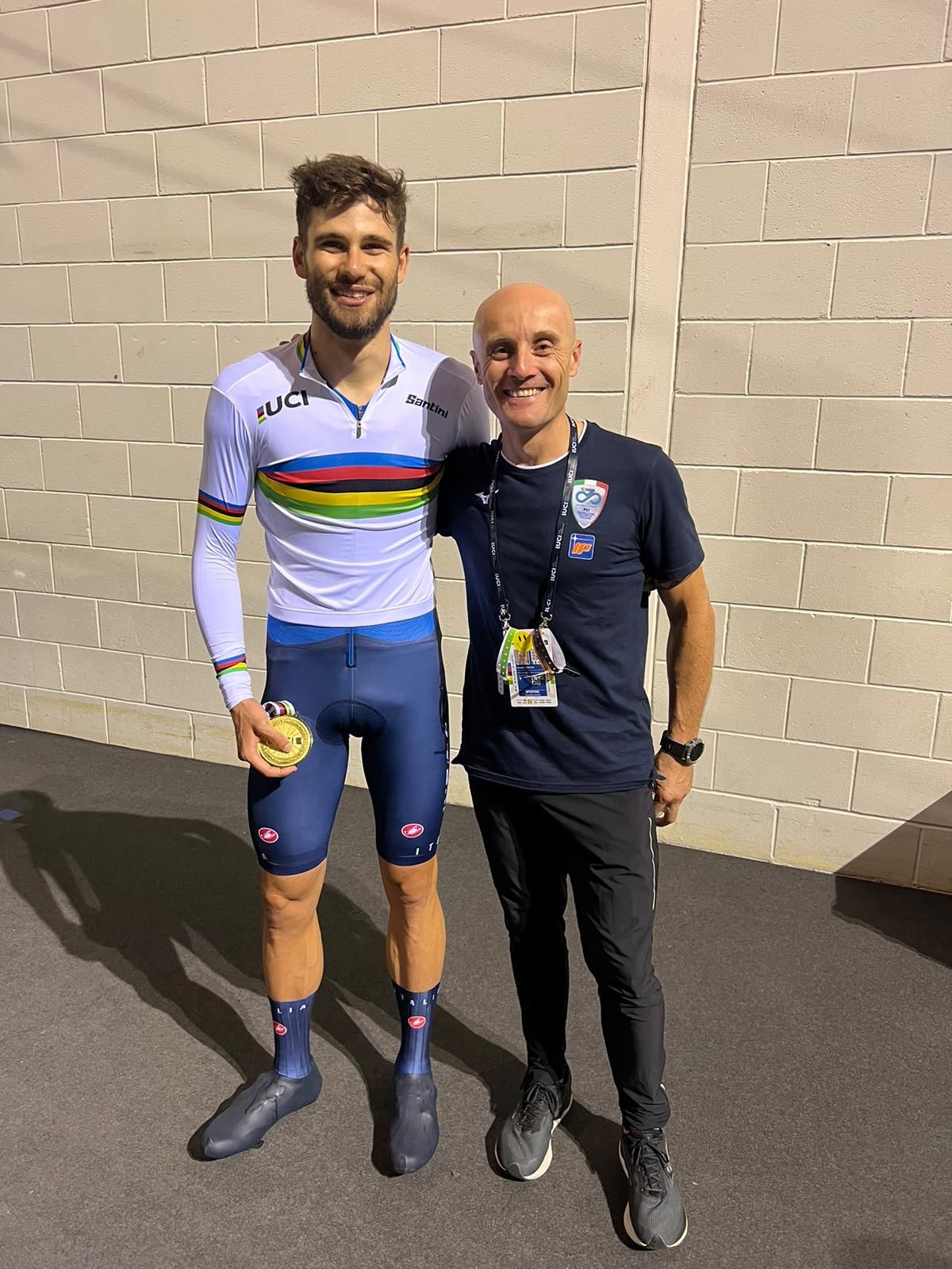 Quel doppio filo “irdidato” che lega “Top” Filippo Ganna, campione pluridecorato del ciclismo “azzurro” con l’altotevere: Federico “Fred” Morini, osteopata di fiducia dello staff dei terapisti della nazionale da ormai quasi cinque anni e Città di Castello con i suoi Gran Premi “Sogepu” a cronometro che lo hanno visto primeggiare a suon di medie pazzesche dal 2016 al 2018. Nell’ultima impresa del leggendario campione delle due ruote ai mondiali su pista a Glasgow nell’inseguimento individuale (sesto successo iridato) c’è anche l’impronta di un grande professionista come Fred Morini, originario di San Giustino, “selciarino”, trapiantato a Città di Castello per la professione di massaggiatore e osteopata con il suo centro.