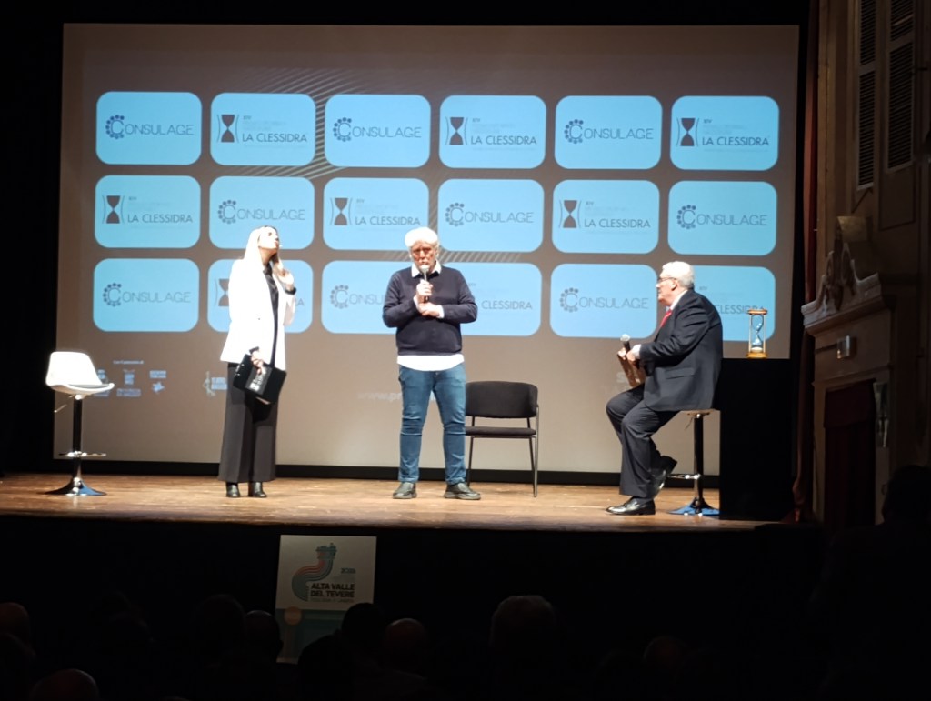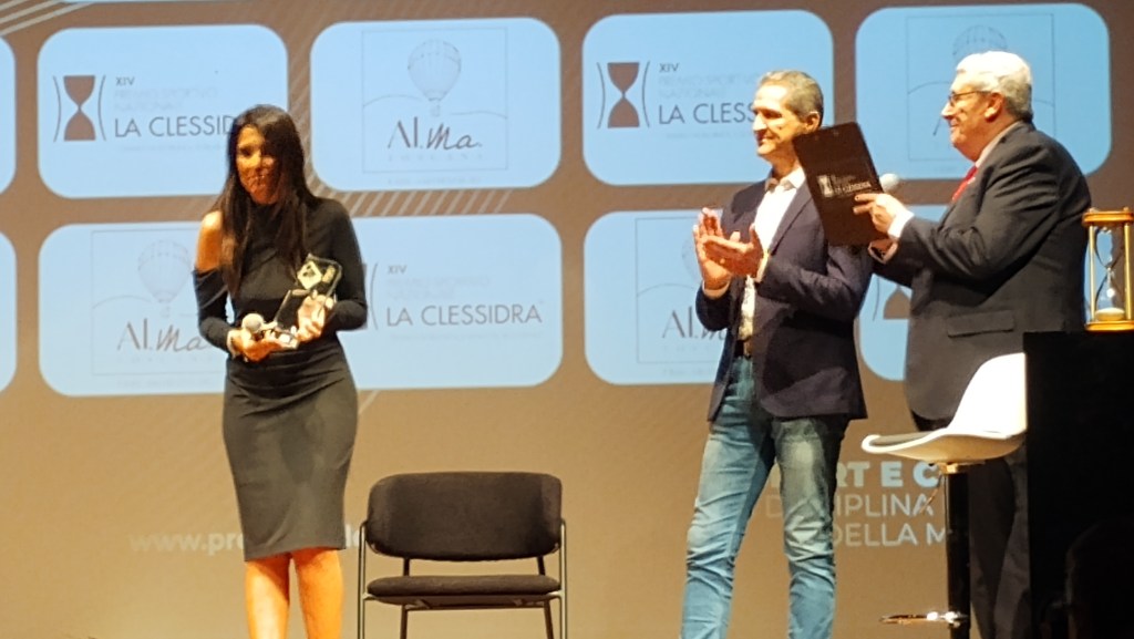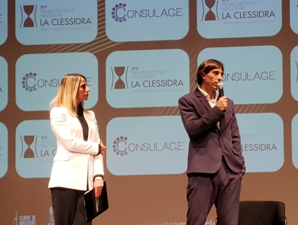 Personaggi di spicco, la gradita sorpresa di avere anche un grande arbitro di pallavolo, Simone Santi, la Clessidra è vissuta ad Anghiari con questa splendida situazione. Magistralmente presentata da Giulia Mizzoni e Massimo Boccucci, con la voce di sottofondo di Marco D’Amore, la manifestazione, giunta alla 14^ edizione, ha visto tra i protagonisti Giacomo Sintini, ex pallavolista e Samuele Robbioni, psicologo dello sport, Michael Kayode giocatore della Fiorentina, Filippo Ranocchia giocatore dell’Empoli, Simona Rolandi conduttrice della Domenica Sportiva, Francesco Repice, voce di Tutto il calcio minuto per minuto, Gian Primo Giardi, Presidente del Comitato Olimpico Sammarinese, Fred Morini, osteopata e fisioterapista sportivo, Pierpaolo Marino, attuale ds del Napoli, Davide Ballardini, allenatore di calcio, Marco Villa, CT della Nazionale italiana di Ciclismo su pista e il Campione del Mondo di ciclismo su pista Filippo Ganna (nella foto in alto). Tutti premiati con valide, precise motivazioni di fronte ad un Teatro di Anghiari che ha salutato con applausi sinceri i premiati e i conduttori. Complimenti agli organizzatori: Sauro Giorni, Alessio Scarscelli, Gionata Graziotti, complimenti anche al comune di Anghiari, al sindaco e Presidente della Provincia di Arezzo, Alessandro Polcri e all’assessore al Turismo Ilaria Lorenzini che non sino lasciati sfuggire un’altra ghiotta occasione per promuovere la città di Baldaccio.