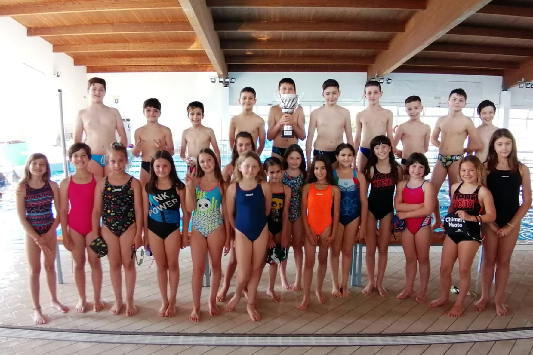 I giovanissimi atleti della Chimera Nuoto Arezzo ai vertici della Toscana. Il Campionato Regionale a Squadre per Esordienti B ha visto la società aretina raggiungere uno storico traguardo, piazzandosi al terzo posto della classifica tra venticinque squadre di tutta la Toscana, alle spalle delle sole Rari Nantes Florentia e Livorno Aquatics. La manifestazione era riservata ai nuotatori nati tra il 2010 e il 2012 che si sono confrontati nella piscina “Dani” di Firenze e, tra di loro, erano presenti anche ventisette promesse provenienti dal palazzetto del nuoto di Arezzo e dalla piscina comunale di Foiano della Chiana che hanno ottenuto un risultato di assoluto prestigio.