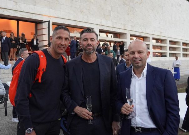 A ritirare il premio i tre soci fondatori del Padel Arena Perugia: Matteo Minelli, noto imprenditore Umbro e i due grandi ex calciatori campioni del mondo Marco Materazzi e Andrea Barzagli.